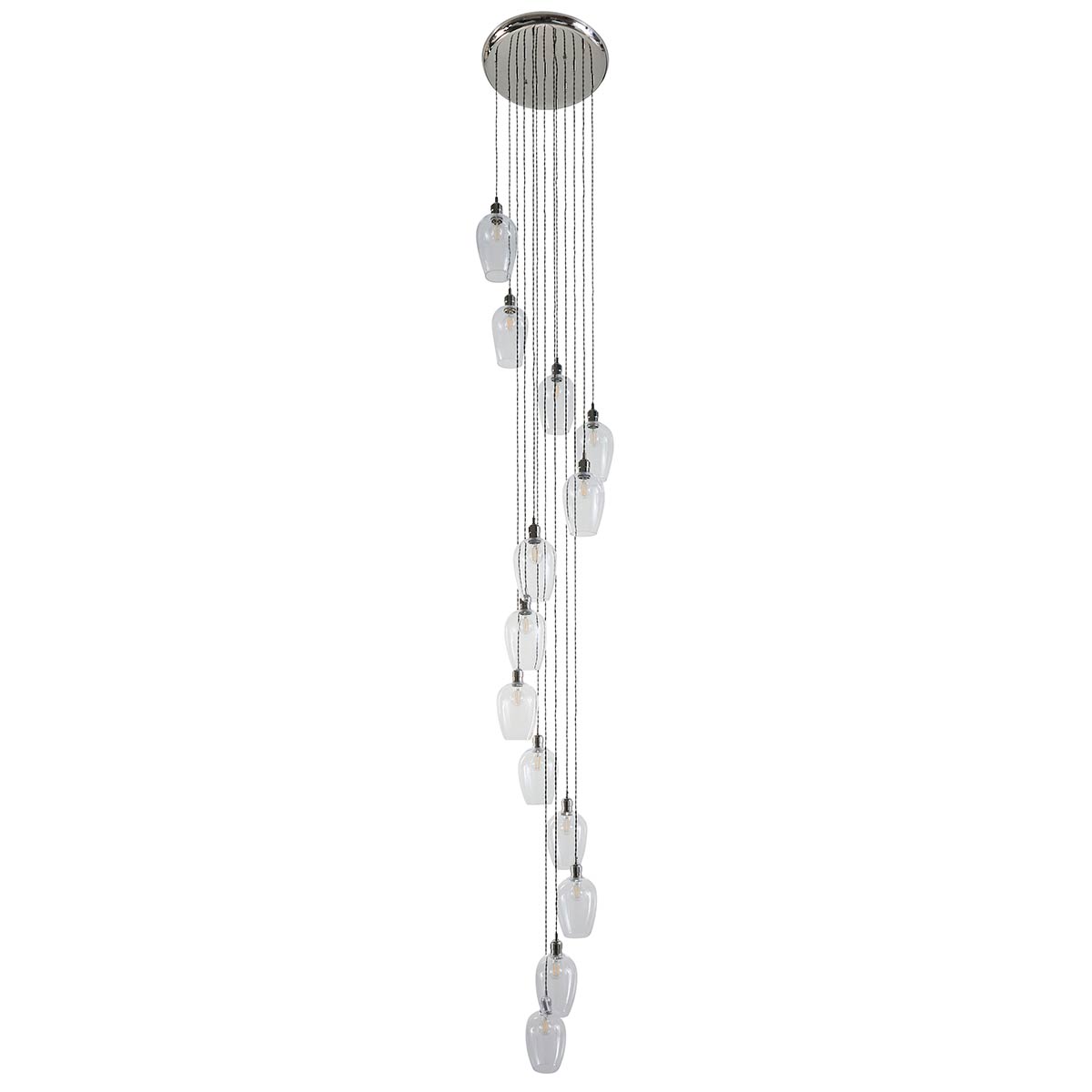 13 Light Stairwell Pendant in Polished Nickel with Clear Glass