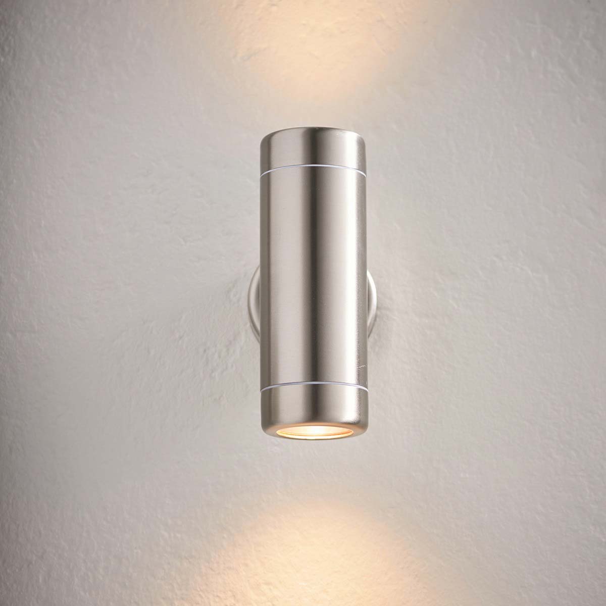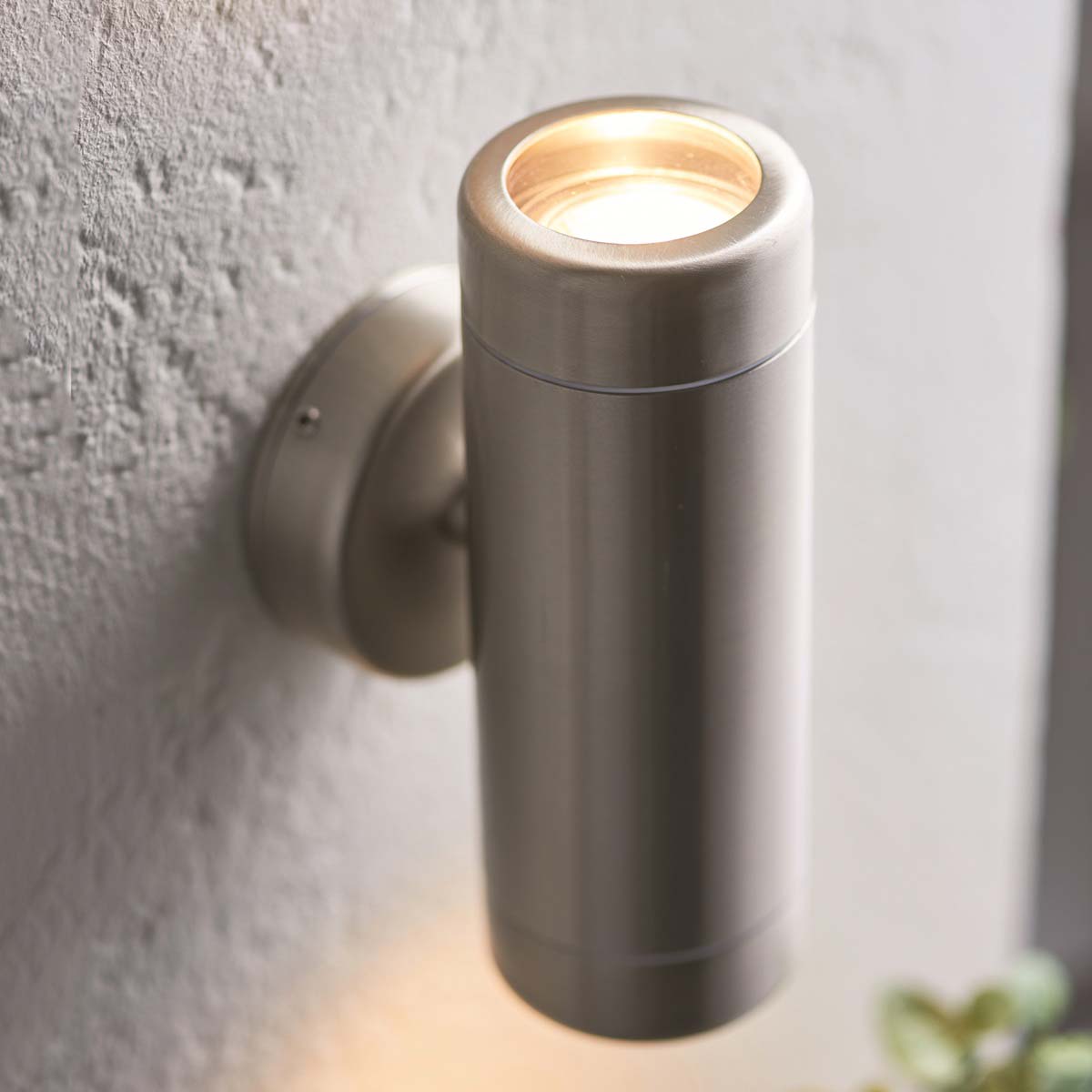The Atlantis outdoor up and down wall light in 316 stainless steel and rated IP65. A modern design and appealing choice for any outside space. With upward and downward facing lamps to wash the wall above and ground below with light. Manufactured from brushed marine grade stainless steel, this fitting is ideally suited to coastal areas and industrial environments.