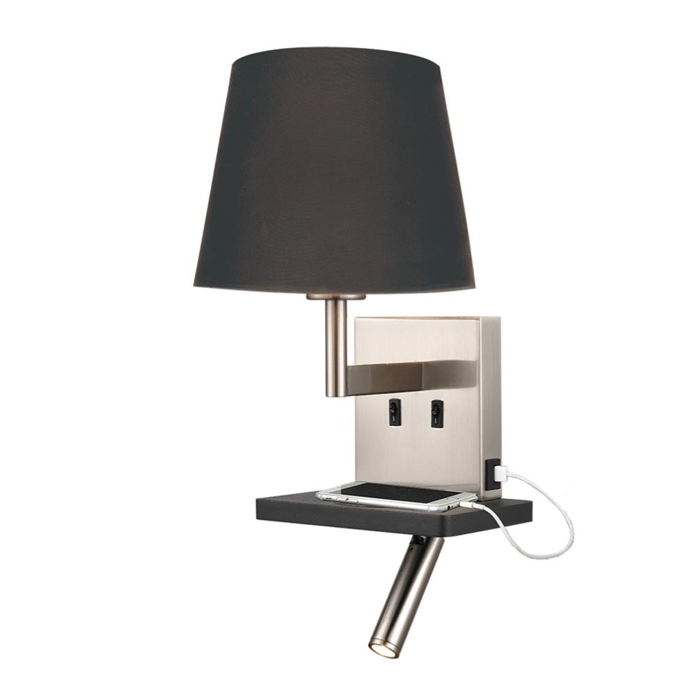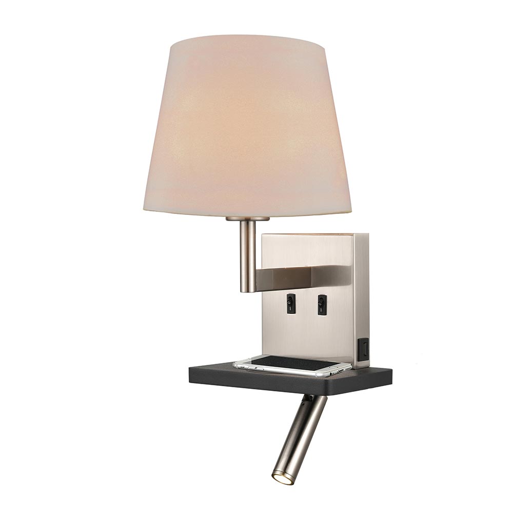 The two switches allow you to use the main light and reading light independently, and the wireless charging pad and USB allow you to charge your portable devices. The timeless satin nickel finish blends well with a variety of room styles, and the boutique style gives any room a lift. Available with a choice of shade colour and ideal for use on your bedroom, living room or dining room wall.