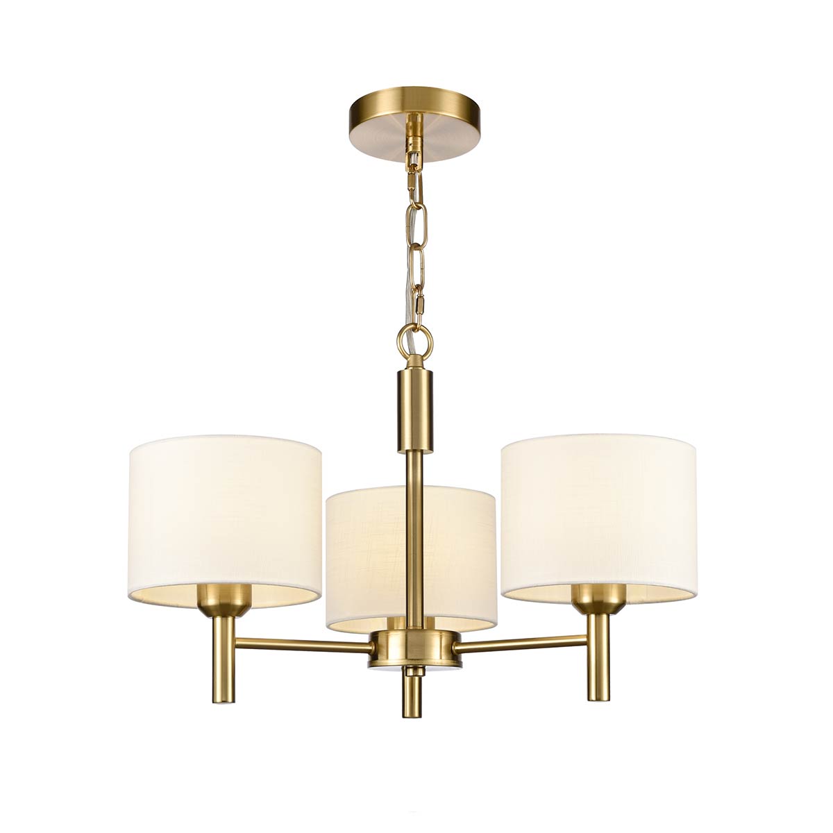 The Barolo 3 light dual mount ceiling light in aged brass with off-white textured fabric shades from Franklite features classic looks and quality construction. A versatile ceiling light that can be used as a hanging chandelier, or as a semi-flush for low ceilings. At home in both traditional and modern settings, the classic lines and aged brass finish are timeless.