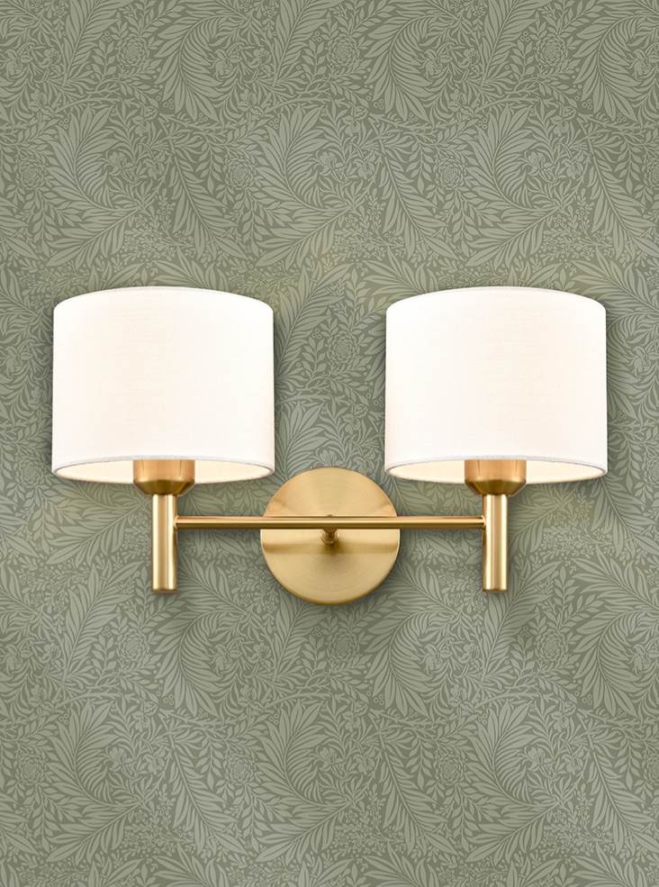 The fabric shades provide a softer, glare free light, making it ideal for a bedroom, living or dining room wall. Part of the Barolo collection from Franklite, trusted for quality lighting.