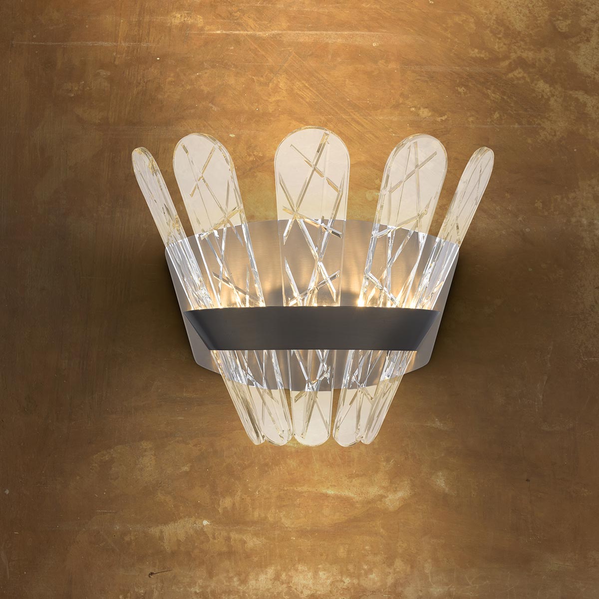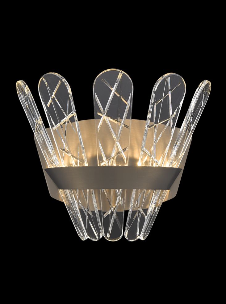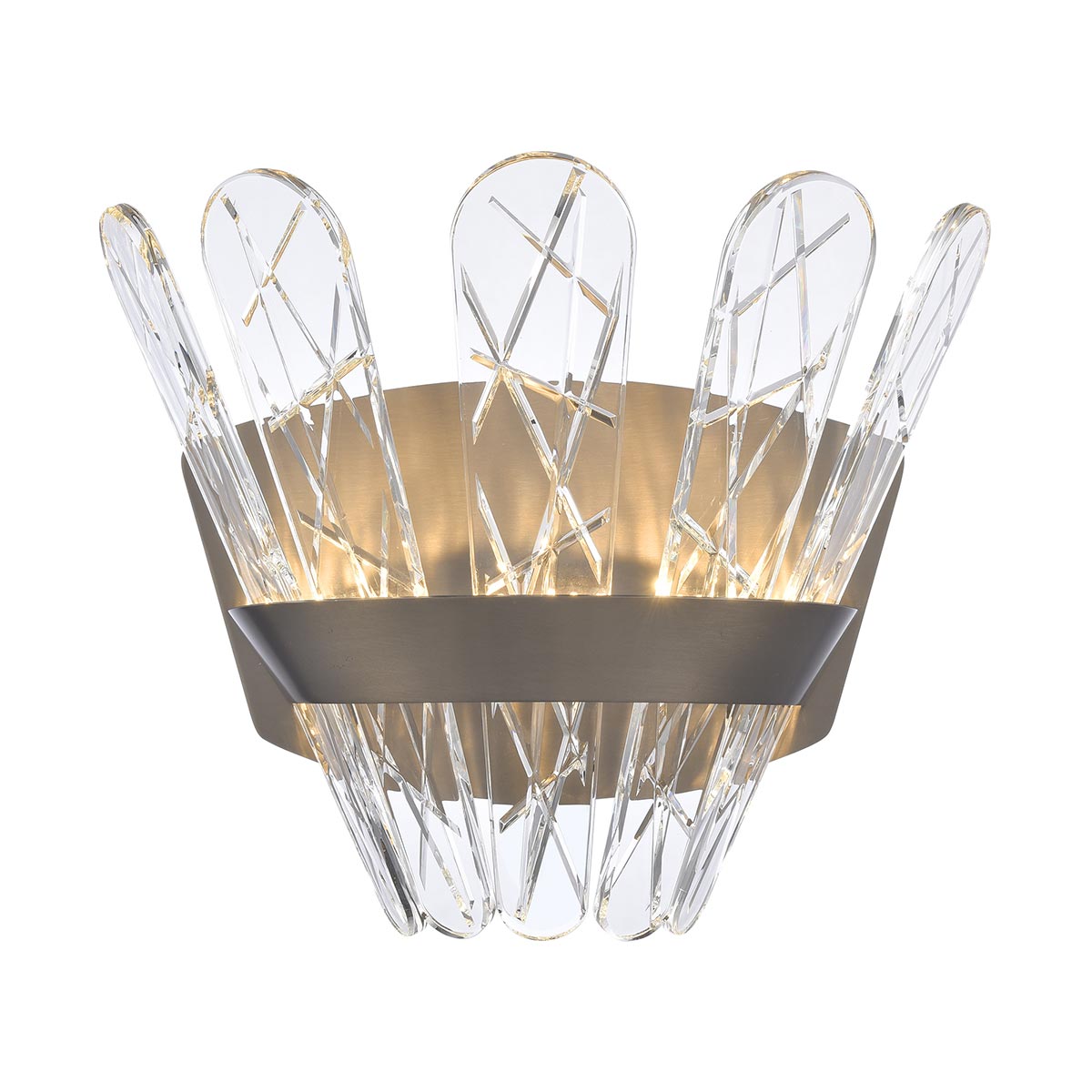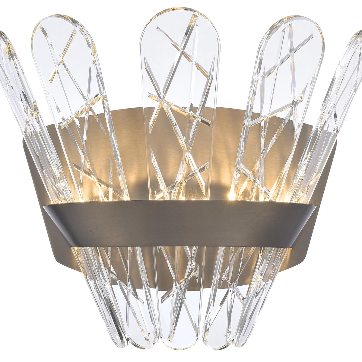 Modern and stunning, the Beatrice dimmable LED wall light in bronze with crystal glass from Franklite can transform any room. This wall light features a brushed brass finish wall mount and half-round LED filled band, decorated with delicate veined crystal glass panels. Beautifully designed, this wall light is a luxurious, attractive and functional addition to any room.