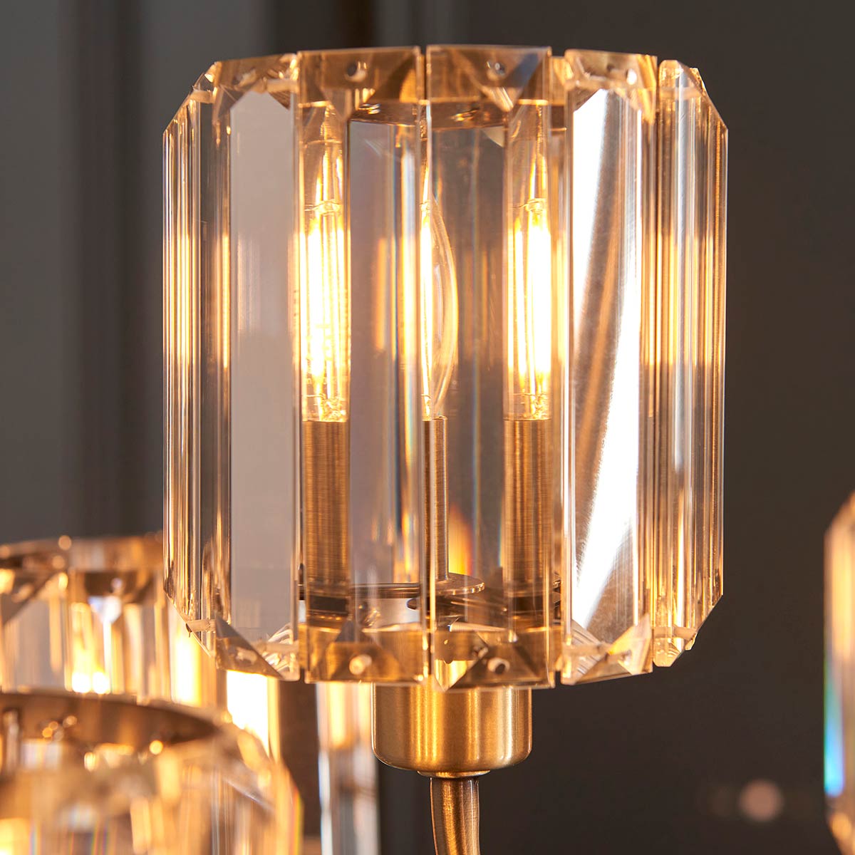 Berenice 9 Light Chandelier in Antique Brass with Faceted Glass