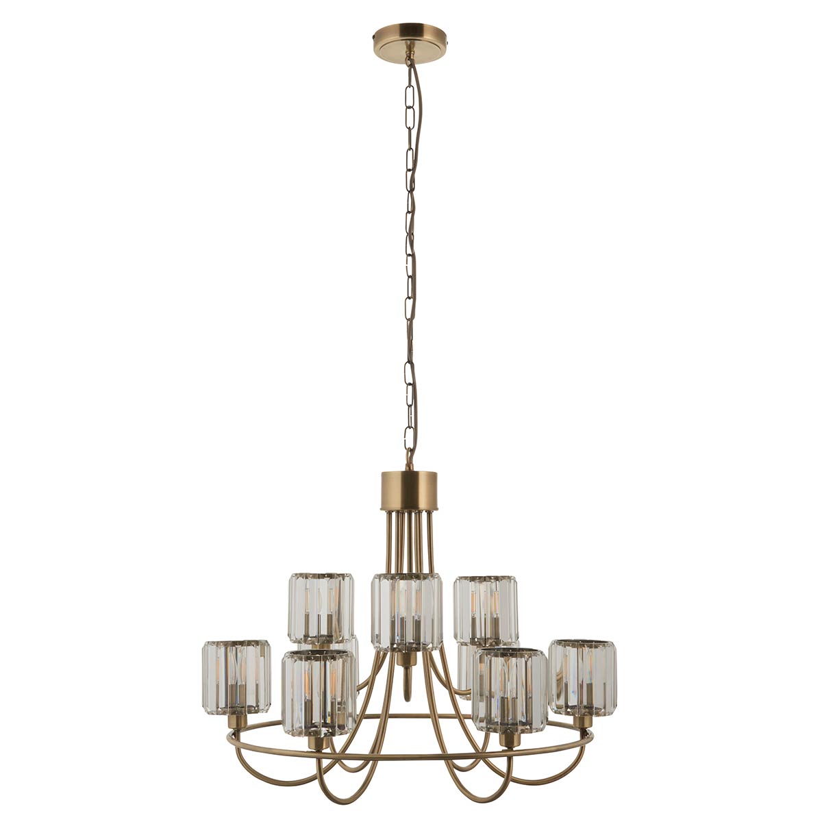 Add elegant sophistication to your home with the Berenice 9 light chandelier in antique brass by Endon Lighting.