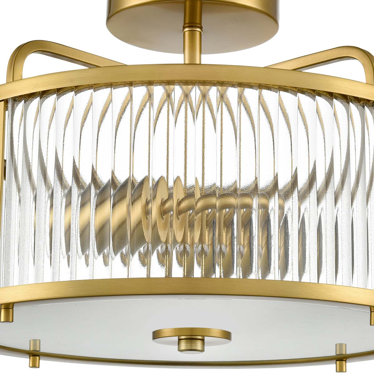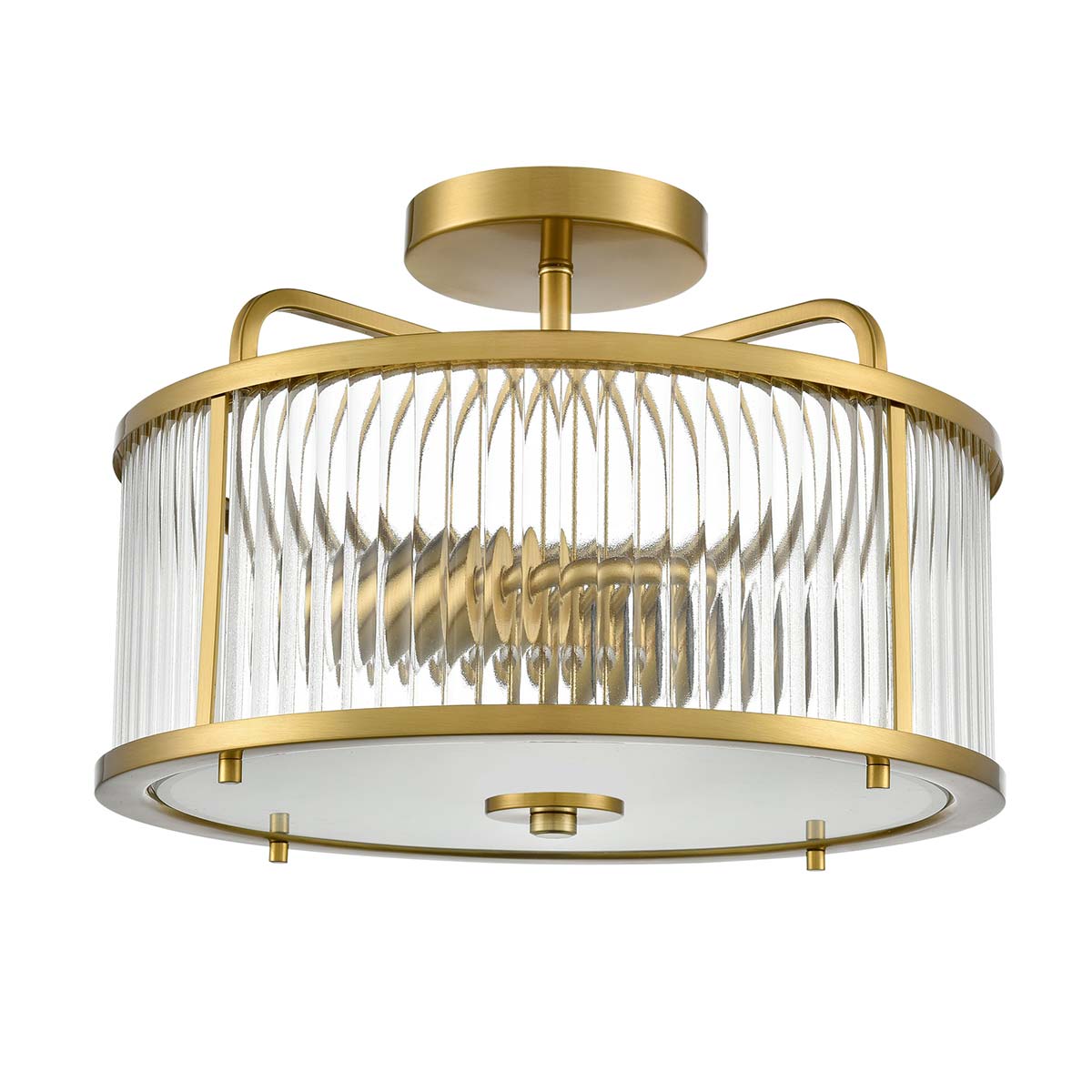 Introducing the Bonham, a 2 light traditional semi flush ceiling light, with aged brass finish metalwork, ribbed glass sides and a frosted lower diffuser. Designed for rooms with a low ceiling, the Bonham features a circular ceiling mount, short drop rod and clear ribbed glass sandwiched between circular top and bottom frames, with a lower frosted glass diffuser to prevent glare.
