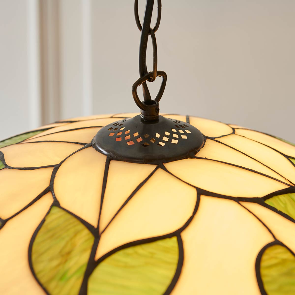 The Botanica large Tiffany pendant light is handcrafted, and the colours may vary slightly from the images shown, as each piece of glass is hand-made and may differ slightly in colour or shade. This should not be seen as a fault, rather something that makes each Tiffany shade unique.