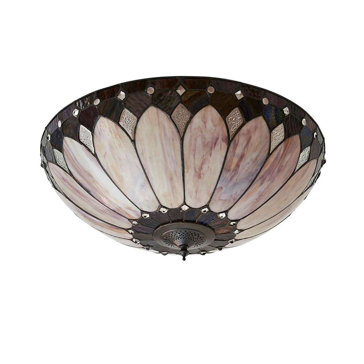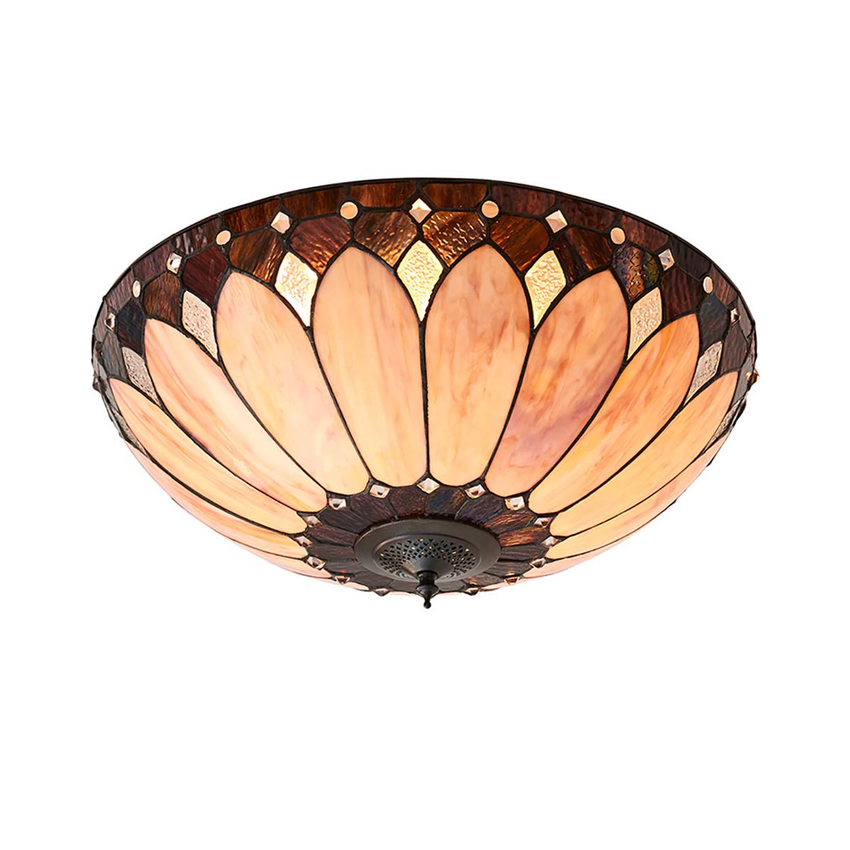 The Brooklyn large 2 light flush Tiffany light is handcrafted, and the colours may vary slightly from the images shown, as each piece of glass is hand-made and may differ slightly in colour or shade. This should not be seen as a fault, rather something that makes each Tiffany shade unique.