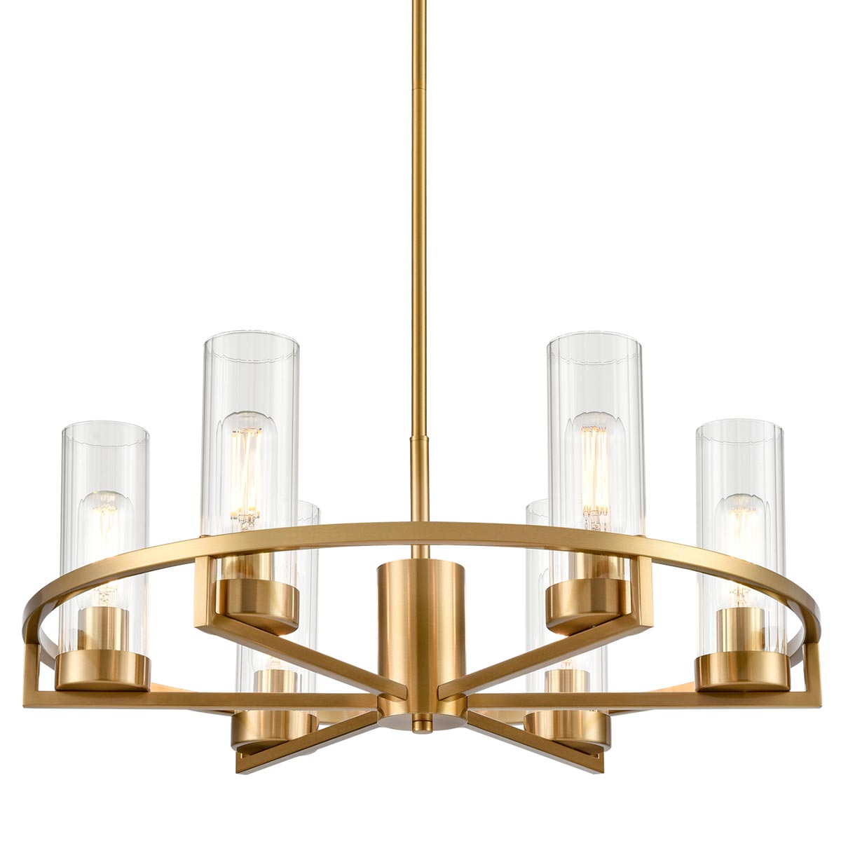 Camelot 6 Light Cartwheel Chandelier Aged Brass Clear Glass