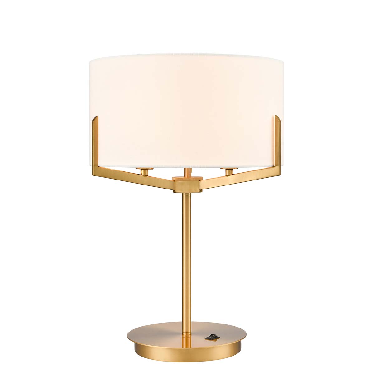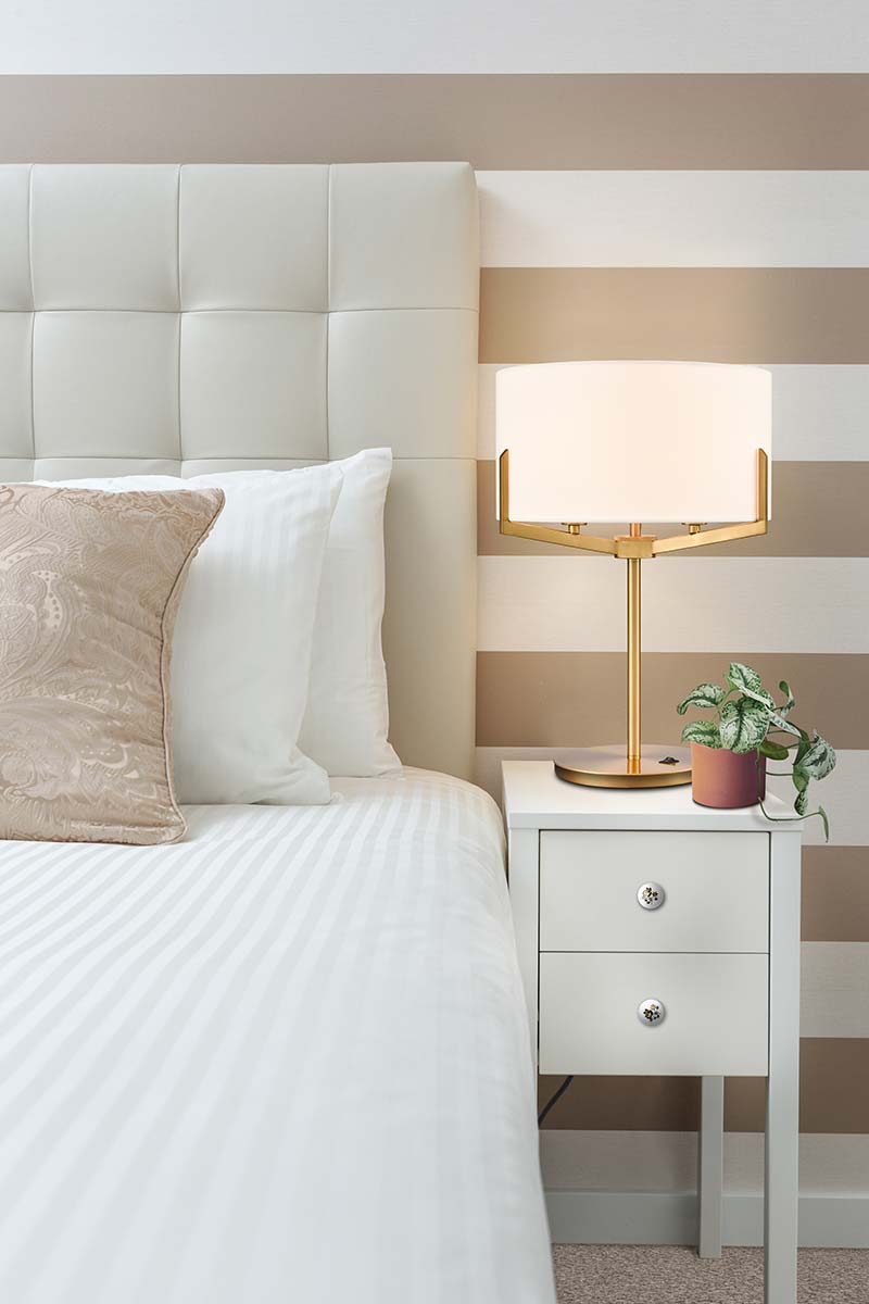The Clifton 3 light aged brass table lamp with cream fabric shade creates a boutique hotel look. Table lamps don’t get sleeker than this, with its circular base, slender stem, three angular arms and sumptuous cream drum shade, it’s certain to enhance almost any room. The three bulbs provide plenty of light, and a top mounted diffuser softens the light beautifully and prevents glare.