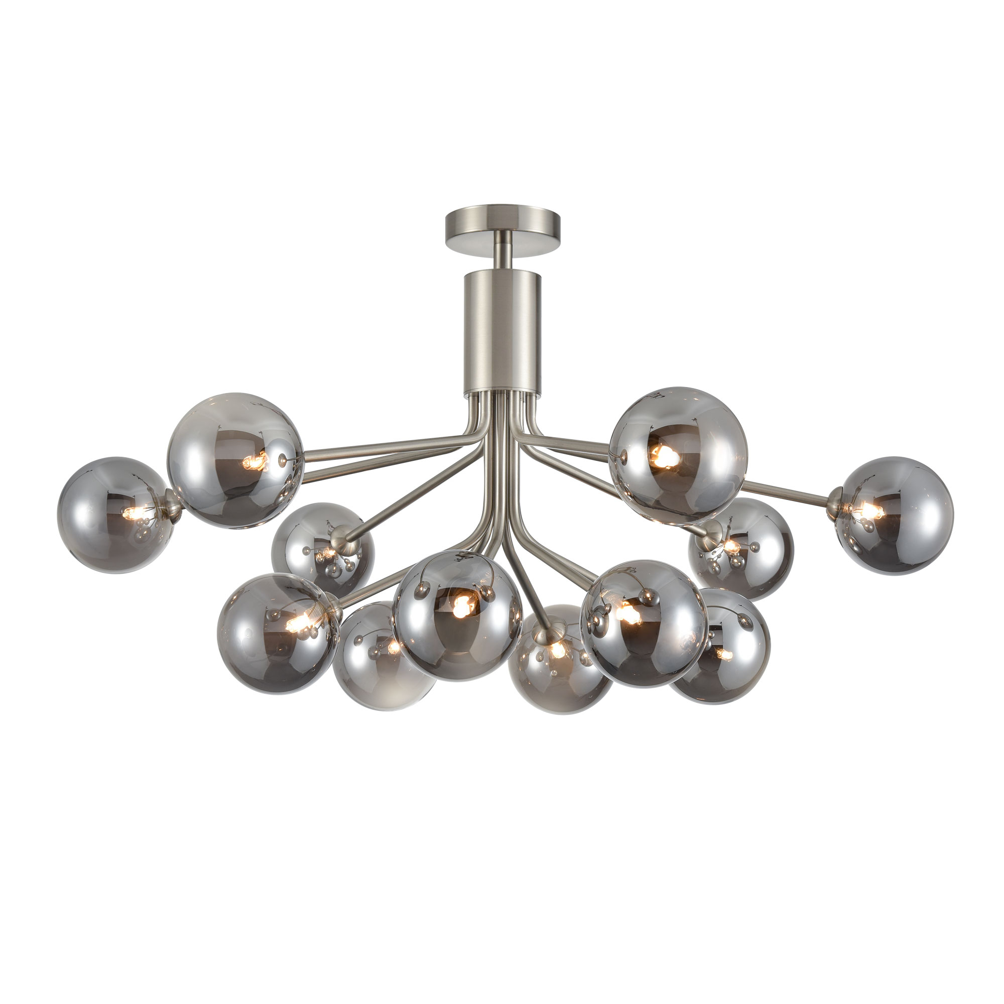 Cosmic Large Modern 12 Light Pendant Satin Nickel Smoked Glass