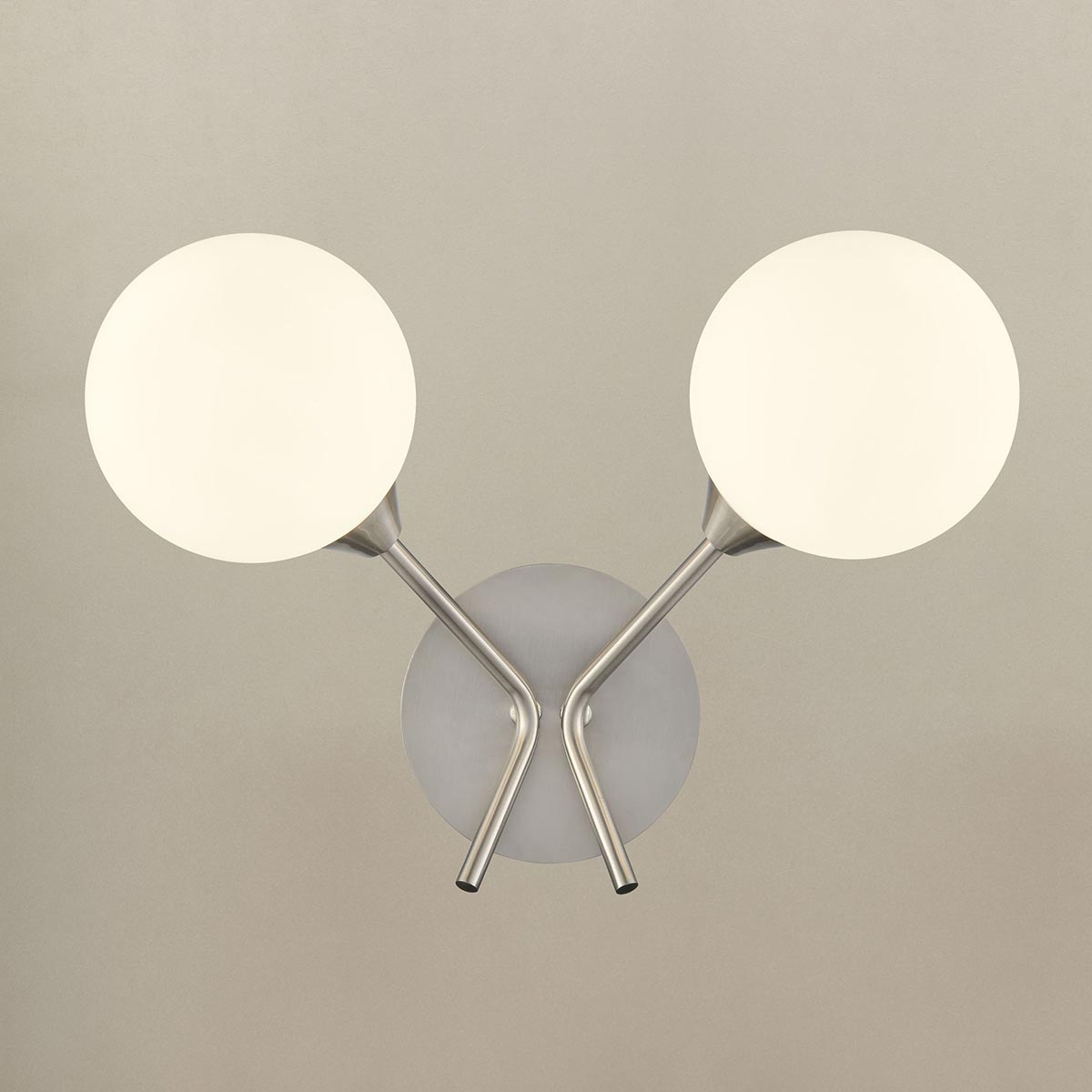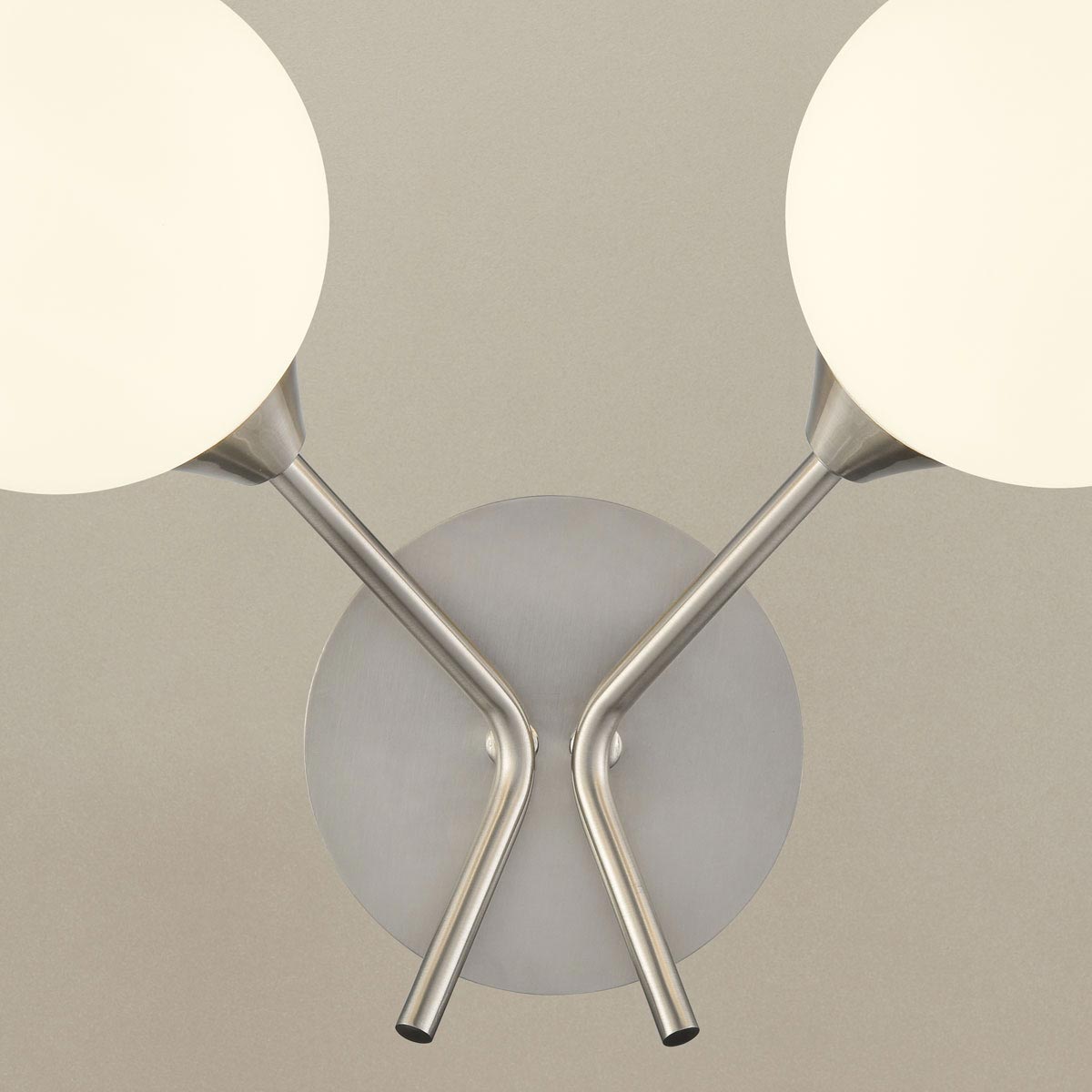 Cosmic Modern Twin Wall Light Satin Nickel Opal Glass