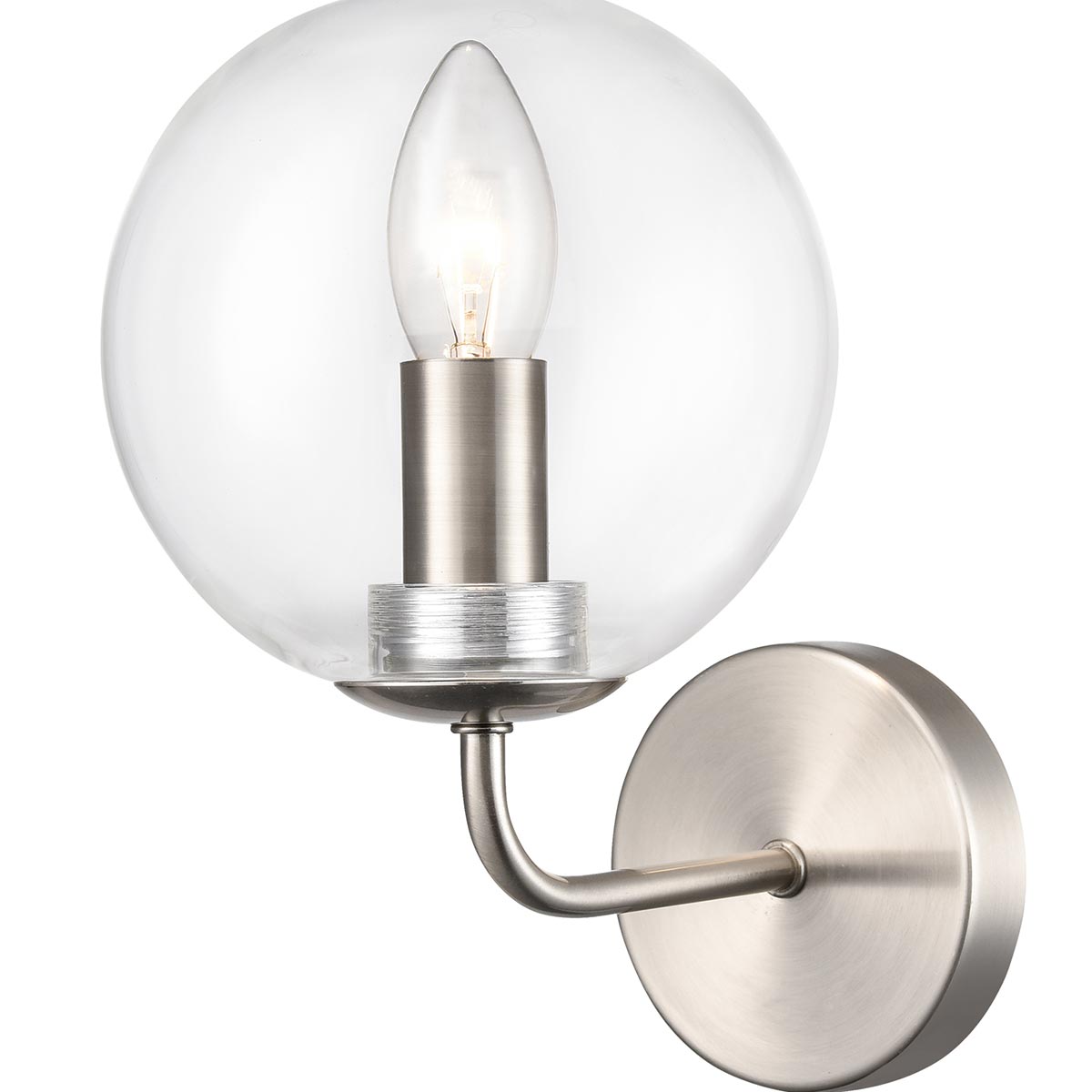 Court Single Satin Nickel Wall Light Clear Glass Globe