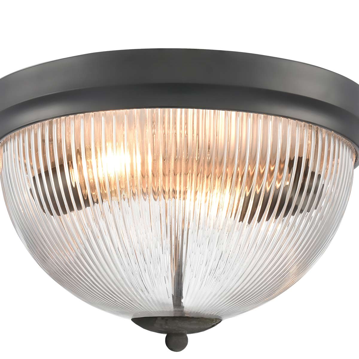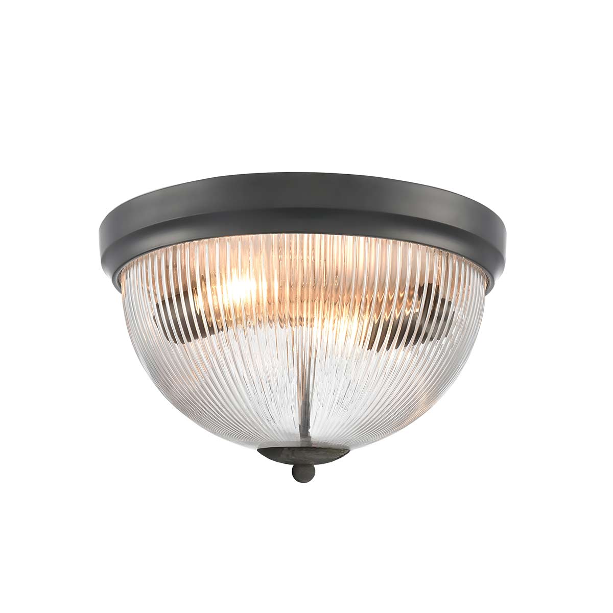 Cupola 2 Light Matt Black Flush Ceiling Light Ribbed Glass