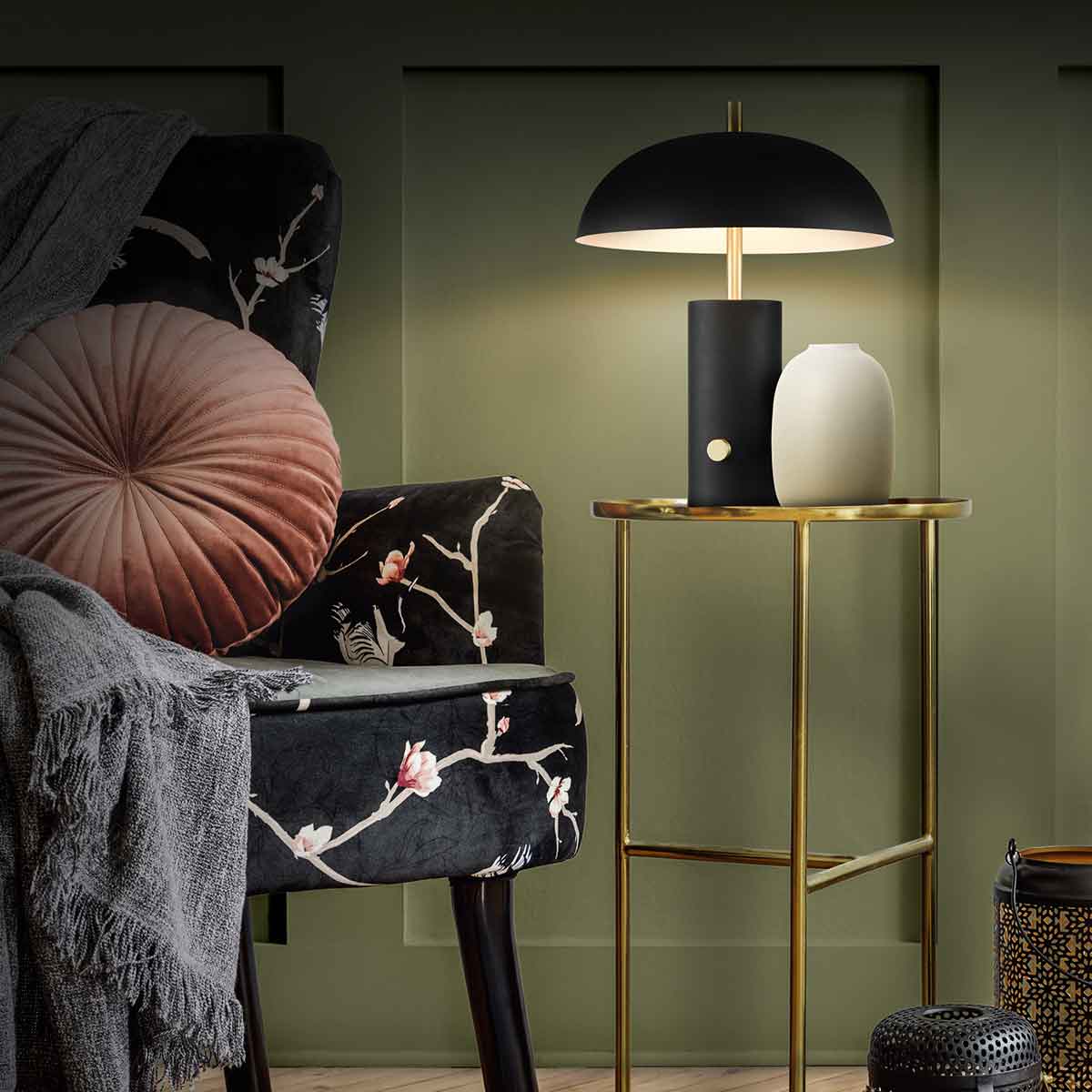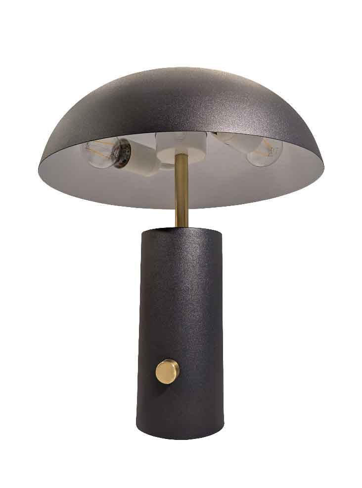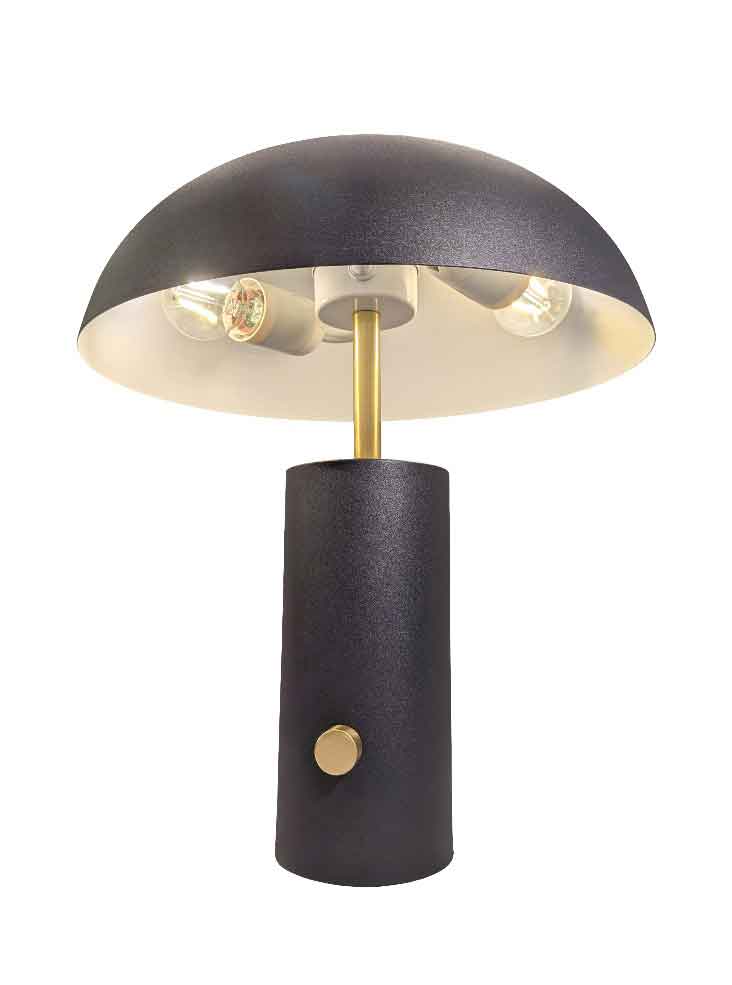 The Dawn, contemporary dimmable matt black table lamp with white shade inner from Franklite creates a boutique look. Table lamps don’t get better than this, with its cylinder base, slender satin brass finish stem and 30cm diameter mushroom shade with a white painted inner. Fitted with a satin brass finish rotary on / off dimmer switch on the base.