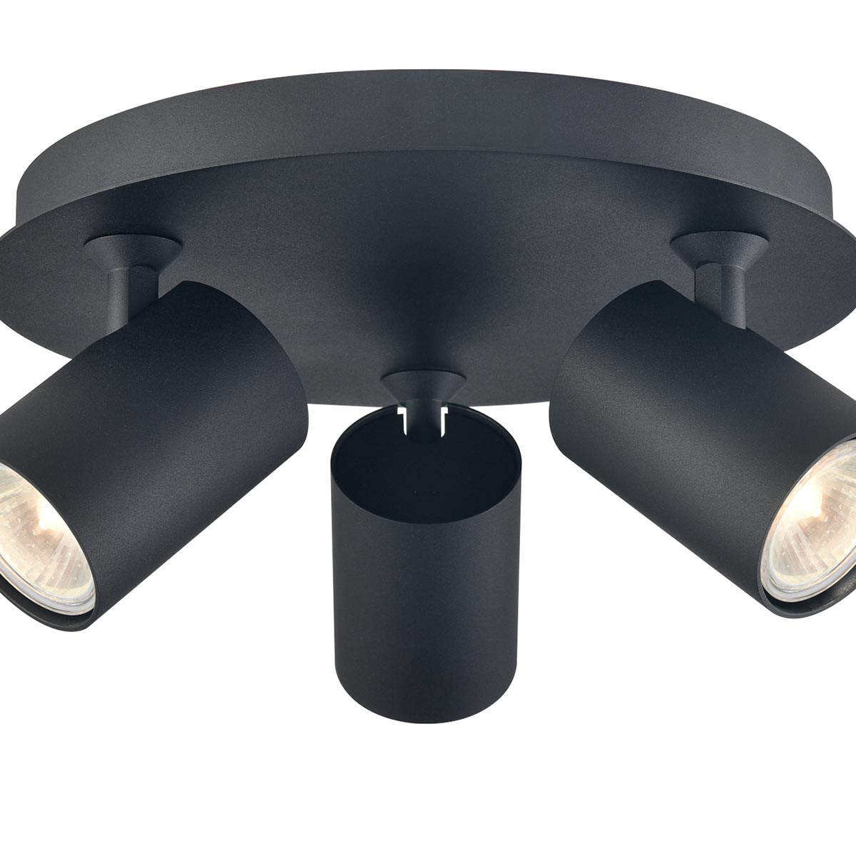 Duet 3 Light Round Ceiling Spotlight Plate Matt Black