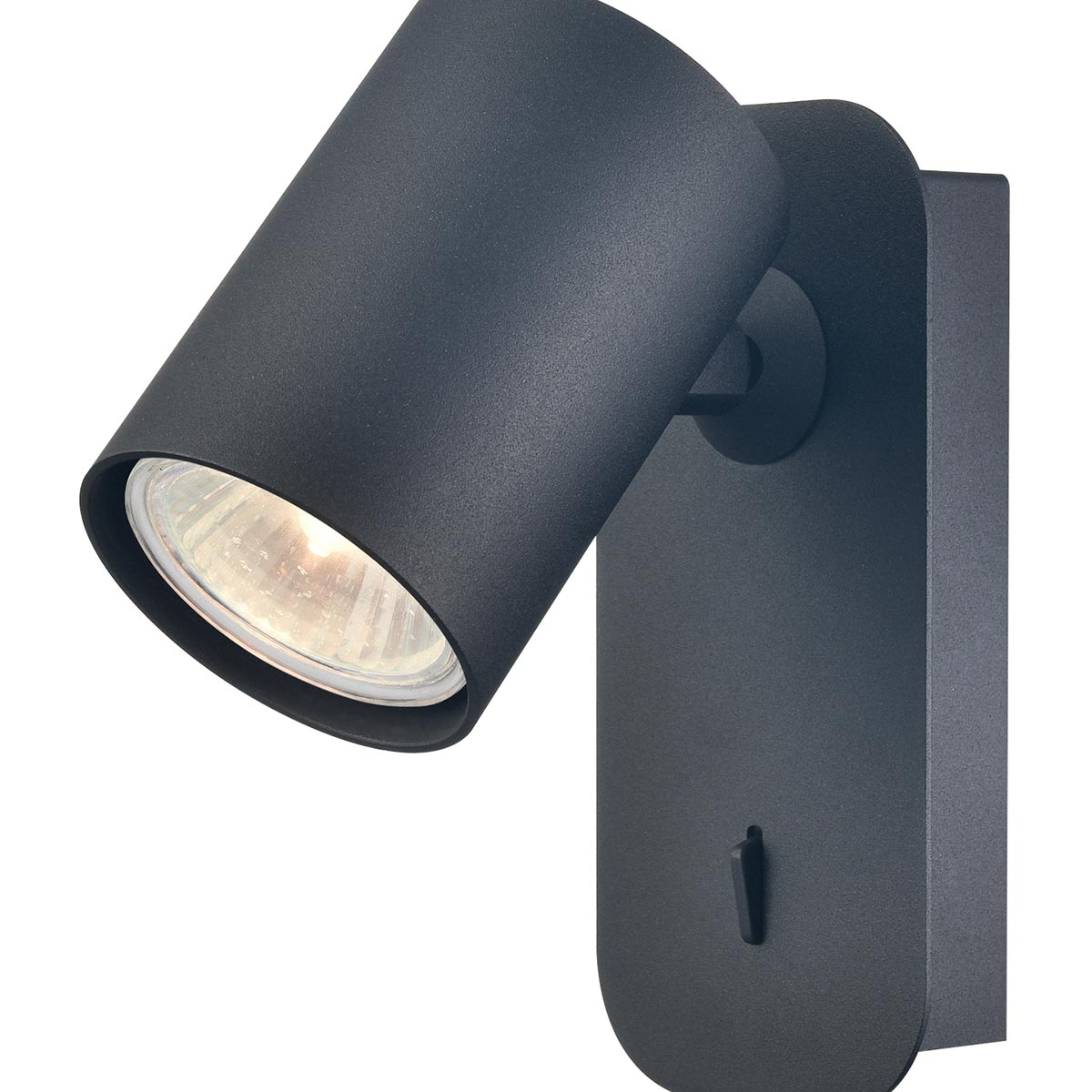The Duet switched single wall spotlight in matt black from Franklite is sleek, modern and stylish. Perfect for living rooms, bedrooms and kitchen walls, it features an upright rectangular wall plate and faceplate, with a fully adjustable matt black cylinder spotlight. The spotlight is switched using a rocker on the mounting plate and is tilt and swivel adjustable.
