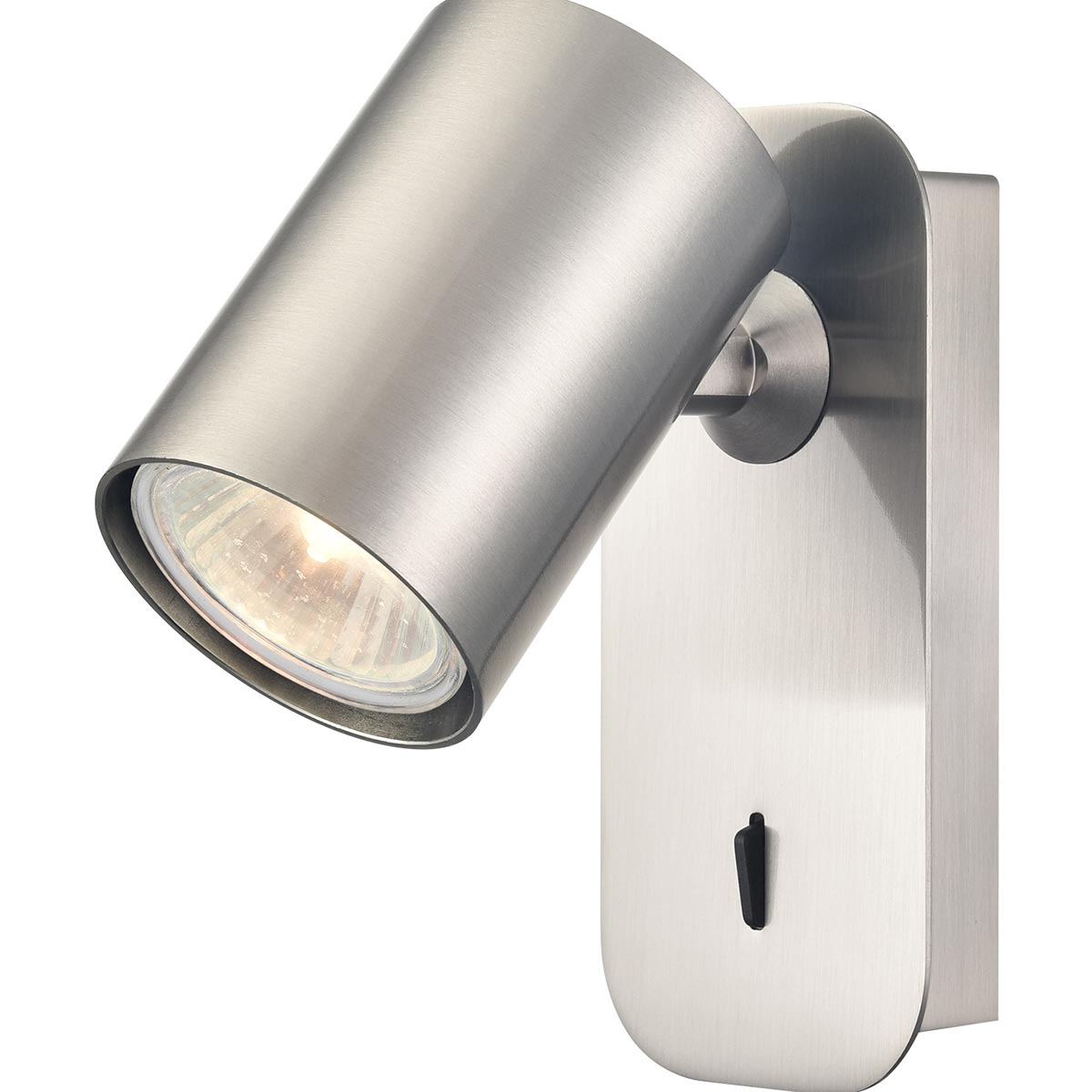 The Duet switched single wall spotlight in satin nickel from Franklite is sleek, modern and stylish. Perfect for living rooms, bedrooms and kitchen walls, it features an upright rectangular wall plate and faceplate, with a fully adjustable satin nickel cylinder spotlight. The spotlight is switched using a rocker on the mounting plate and is tilt and swivel adjustable.