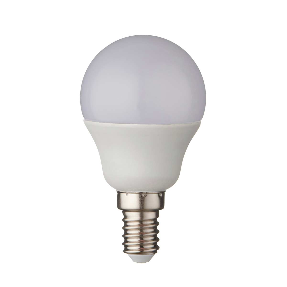 E14 LED golf ball light bulb in warm white with 470 lumens output. A direct replacement for a 40w incandescent lamp. With a warm white 2700k light output, this replacement LED lamp gives an all round spread of light just as an ordinary bulb would. The ideal lamp replacements for all decorative light fittings.