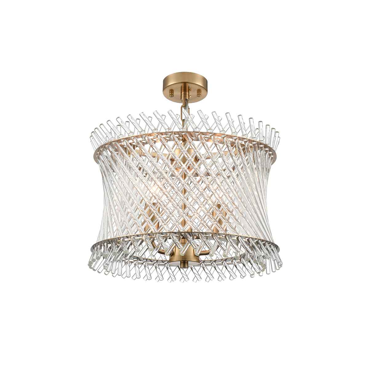 The highest quality inspired design that combines aged brass and clear glass rods to create a sophisticated ceiling light. The glass rods add an extra dimension and sparkle to the design, and the aged brass creates a warm atmosphere. Use this modern chandelier to add sparkling glamour in any room, and ideal for a bedroom, hallway, living room or over a dining room table.