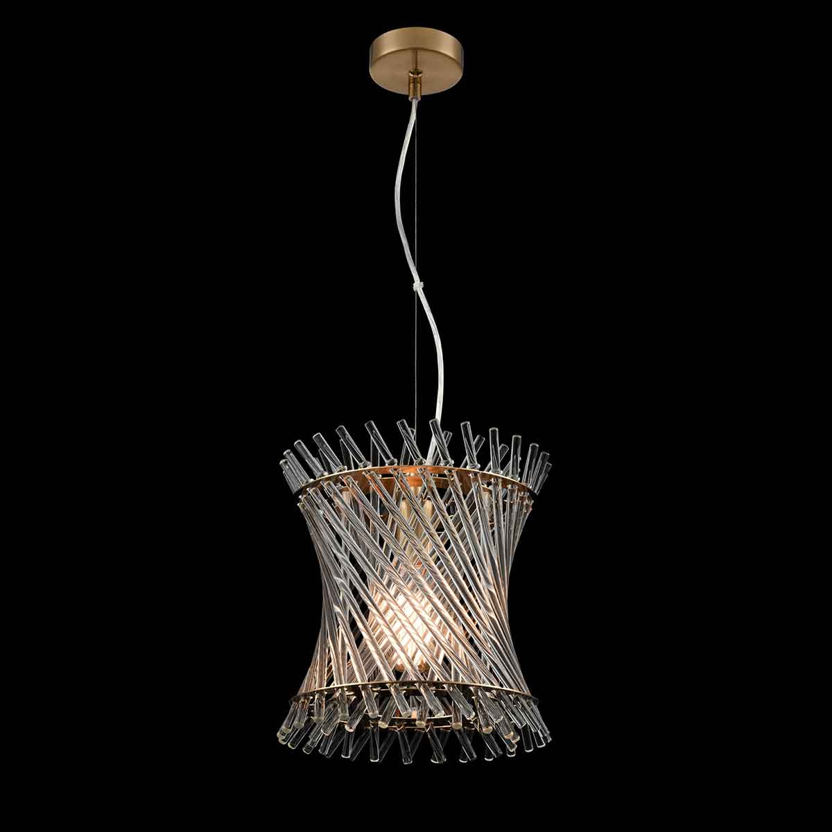 The highest quality inspired design that combines aged brass and clear glass rods to create a sophisticated ceiling light. The glass rods add an extra dimension and sparkle to the design, and the aged brass creates a warm atmosphere. Use this single light pendant to add sparkling glamour in any room, and ideal for a bedroom, hallway, living room or over a dining room table.
