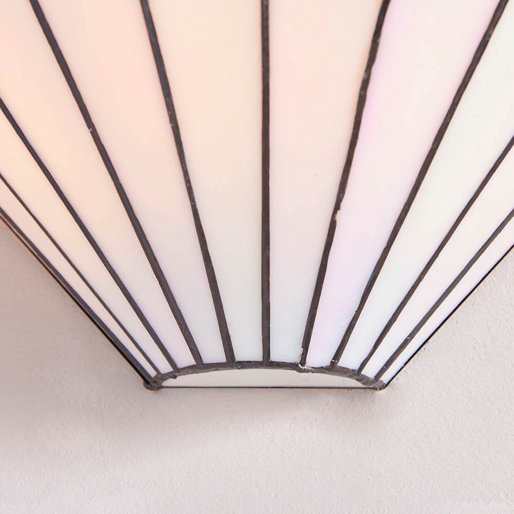 The Fargo Art Deco style Tiffany wall light is handcrafted, and the colours may vary slightly from the images shown, as each piece of glass is hand-made and may differ slightly in colour or shade. This should not be seen as a fault, rather something that makes each Tiffany shade unique.