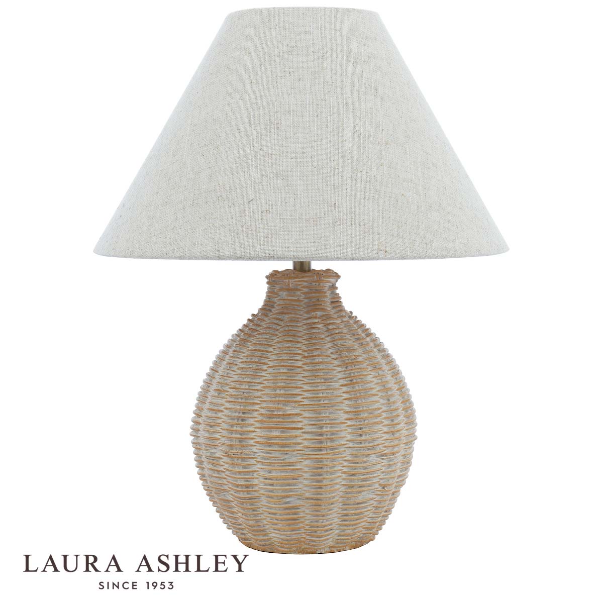 The Fernhill table lamp in matt cream and tan finish with natural linen coolie shade and antique brass metalwork by Laura Ashley is timeless. A traditional, vase shaped lamp base, cast in resin to resemble wickerwork, with cream undertones and tan highlights. The ideal addition to any bedside table, desk or sideboard and supplied with a 30cm diameter natural linen coolie shade.