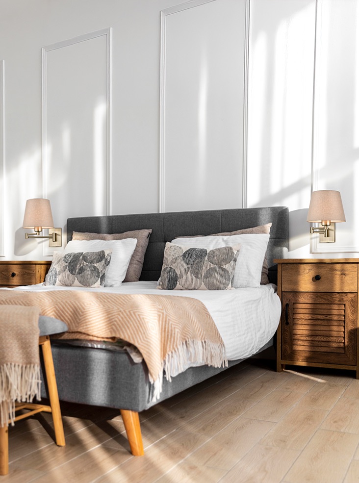 The warm bronze finish blends well with a variety of room styles, and the taupe shade complements almost any style of decor. The light can be extended for reading and pushed back close to the wall for ambient light. Ideal for use on your bedroom, living room or dining room wall.