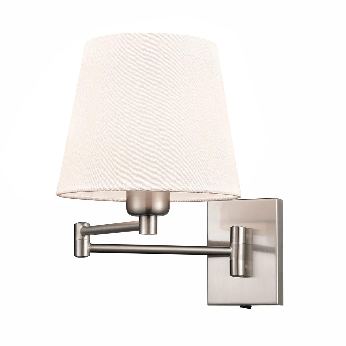 The timeless satin nickel finish blends well with a variety of room styles, and the off-white shade complements any style of decor. The light can be extended for reading and pushed back close to the wall for ambient light. Ideal for use on your bedroom, living room or dining room wall.
