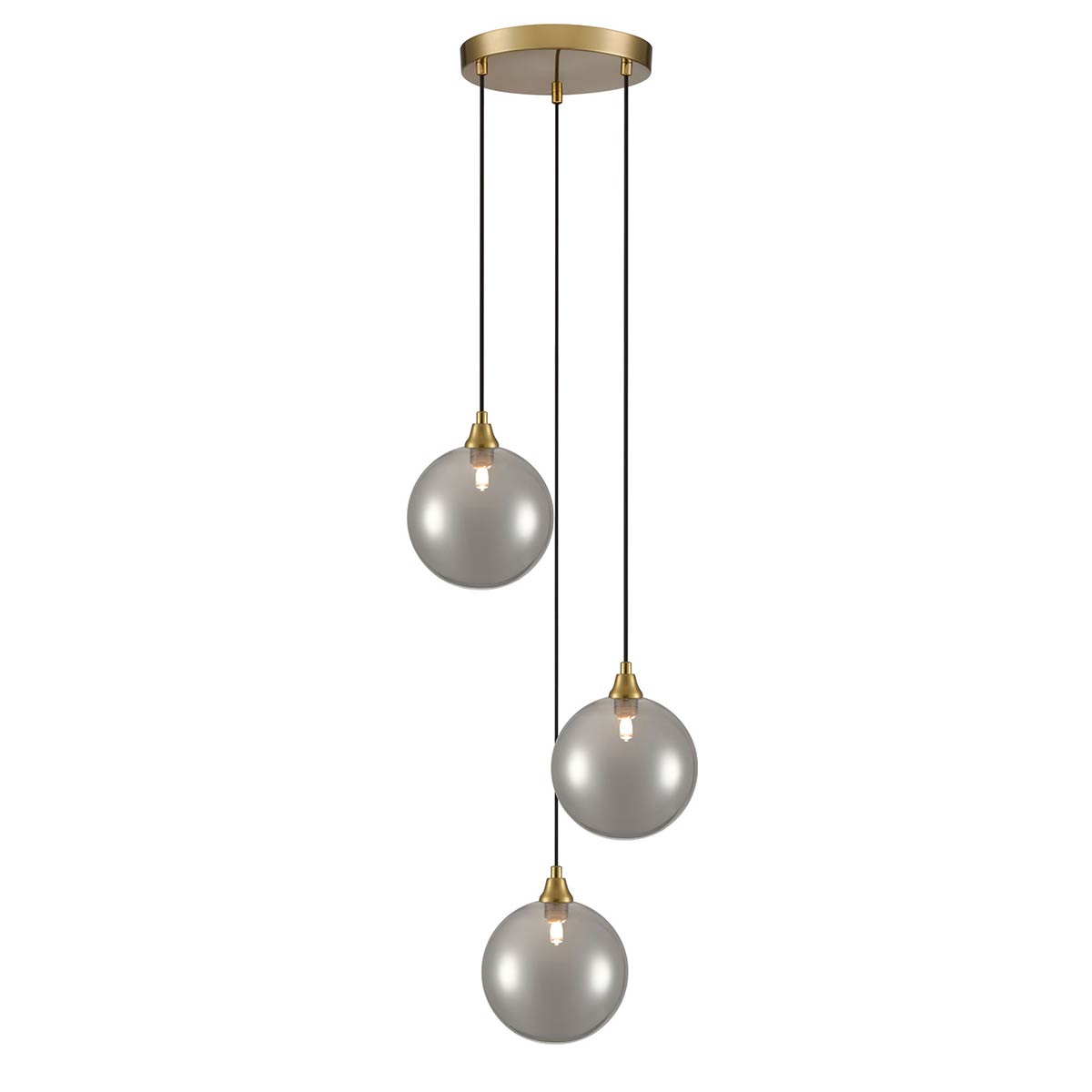 Galaxy 3 Light Pendant with Glass Globe Shades in Aged Brass