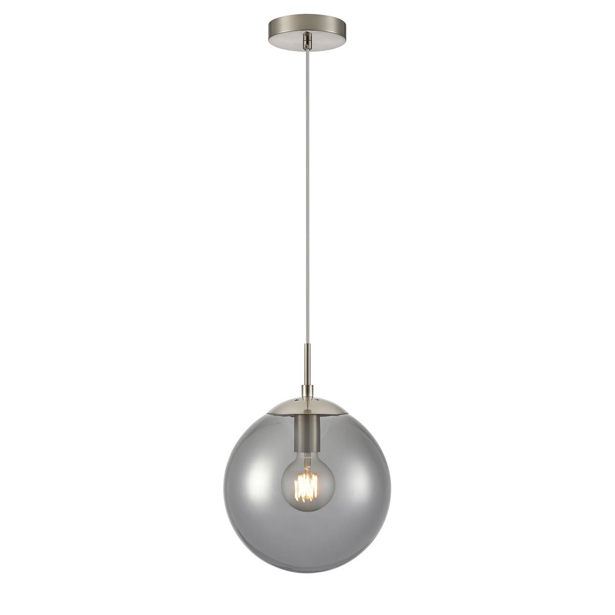 New for 2026, the Galaxy pendant light with large glass globe shade in satin nickel from Franklite. Featuring a circular ceiling plate, with a 25cm diameter glass globe shade attached by black cable suspension. The cable is height adjustable when fitting, so you can get the look that suits you best. Ideal for a bedroom, over a kitchen island or breakfast bar.