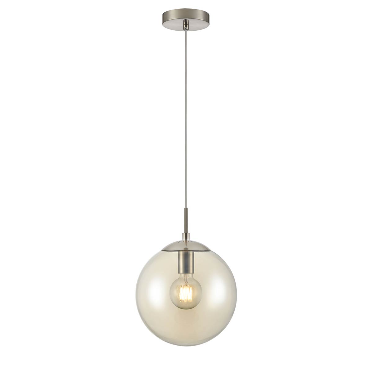 Galaxy Pendant Light with Large Glass Globe Shade in Satin Nickel