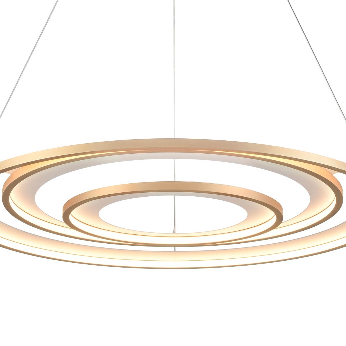 The highest quality minimalist lighting design in matt gold to create a bright, contemporary ceiling light. The 3 ring design is ideal for lighting a large hallway, living room or hung low over a dining room table and height adjustable at the time of installation by shortening the wires. Part of the Halo LED lighting collection from Franklite, trusted for quality home lighting.