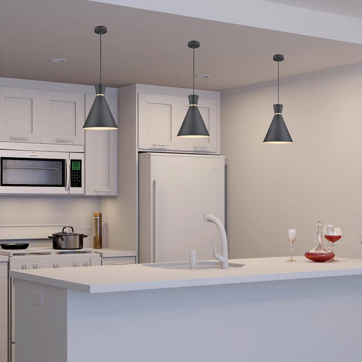This updated industrial style ceiling pendant is suitable for any room in your home except bathroom zones. Ideal for over a bed, breakfast bar, kitchen worktop or island. Install them over a table or in a cluster for the contemporary look. A classic satin black finish metal cone ceiling pendant of outstanding quality and attention to detail.