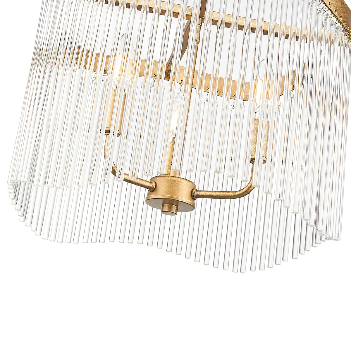 This fabulous ceiling light has so much to love. Gorgeous clear glass rods hang at different levels from a flawless aged brass finish frame and a three light chandelier sits in the centre. Light passes through the glass rods and creates a wonderful sparkle. And the 41cm diameter, together with adjustable height, makes it suitable for almost any room.