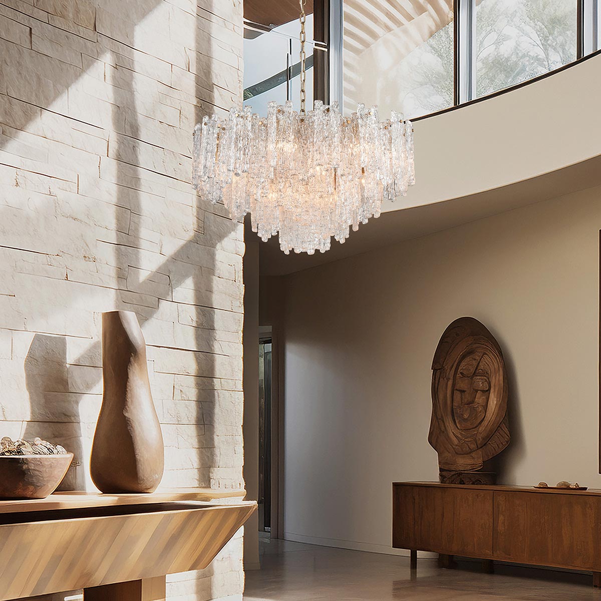 • Icicle large contemporary 16 light crystal chandelier