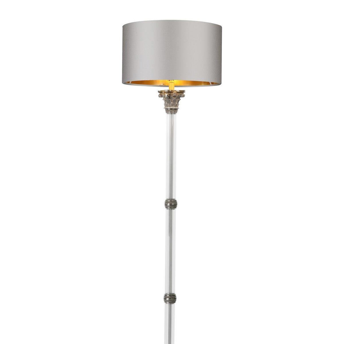 The Imperial 1 light glass column floor lamp base only in pewter finish by David Hunt Lighting. Handcrafted in Britain. Featuring square plinth base, sectional reeded glass column stem and intricately detailed Corinthian style capital at the top. Finished in pewter, fitted with braided brown braided cable and slide-switched lamp holder.