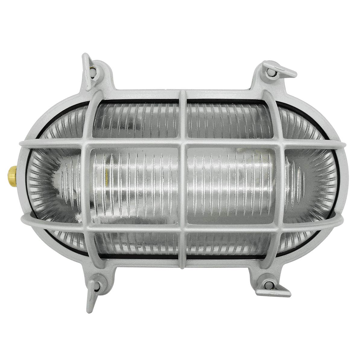 Large Solid Brass Oval Bulkhead Light in Silver IP64