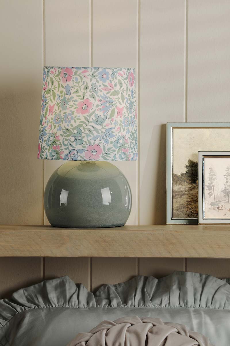The Laura Ashley Sherston blue ceramic table lamp with floral shade brings a touch of English charm to your living room or bedroom. Featuring a round dumpy base and beautiful ditsy floral print shade, this elegant lamp will effortlessly illuminate any space.