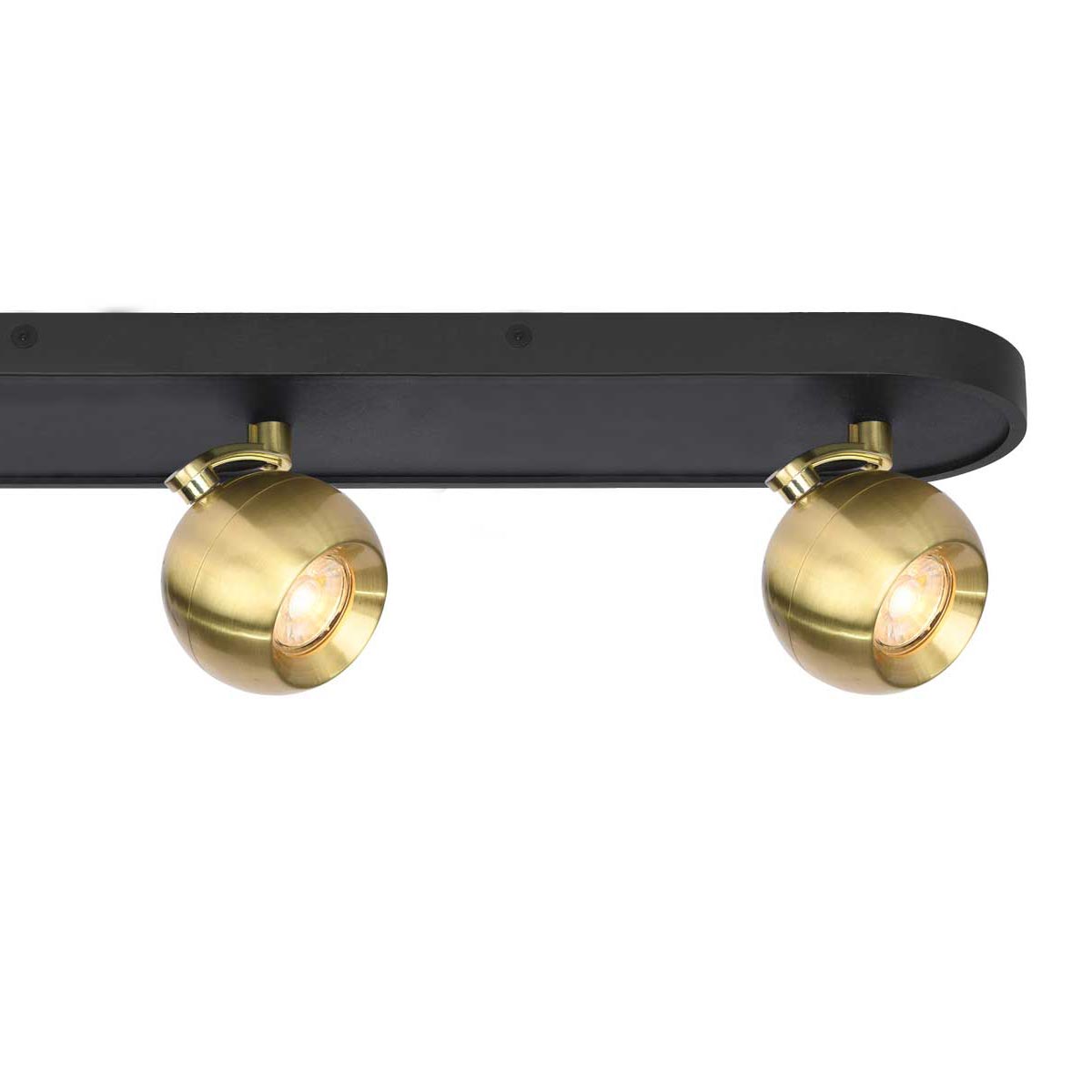 The Lens 3 light ceiling spotlight bar in matt black and aged brass from Franklite is modern, stylish and practical. Perfect for living rooms and kitchens, it features a rectangular matt black ceiling plate, with three evenly spaced fully adjustable aged brass ball spotlights. Each head contains a spotlight bulb and is tilt and swivel adjustable.