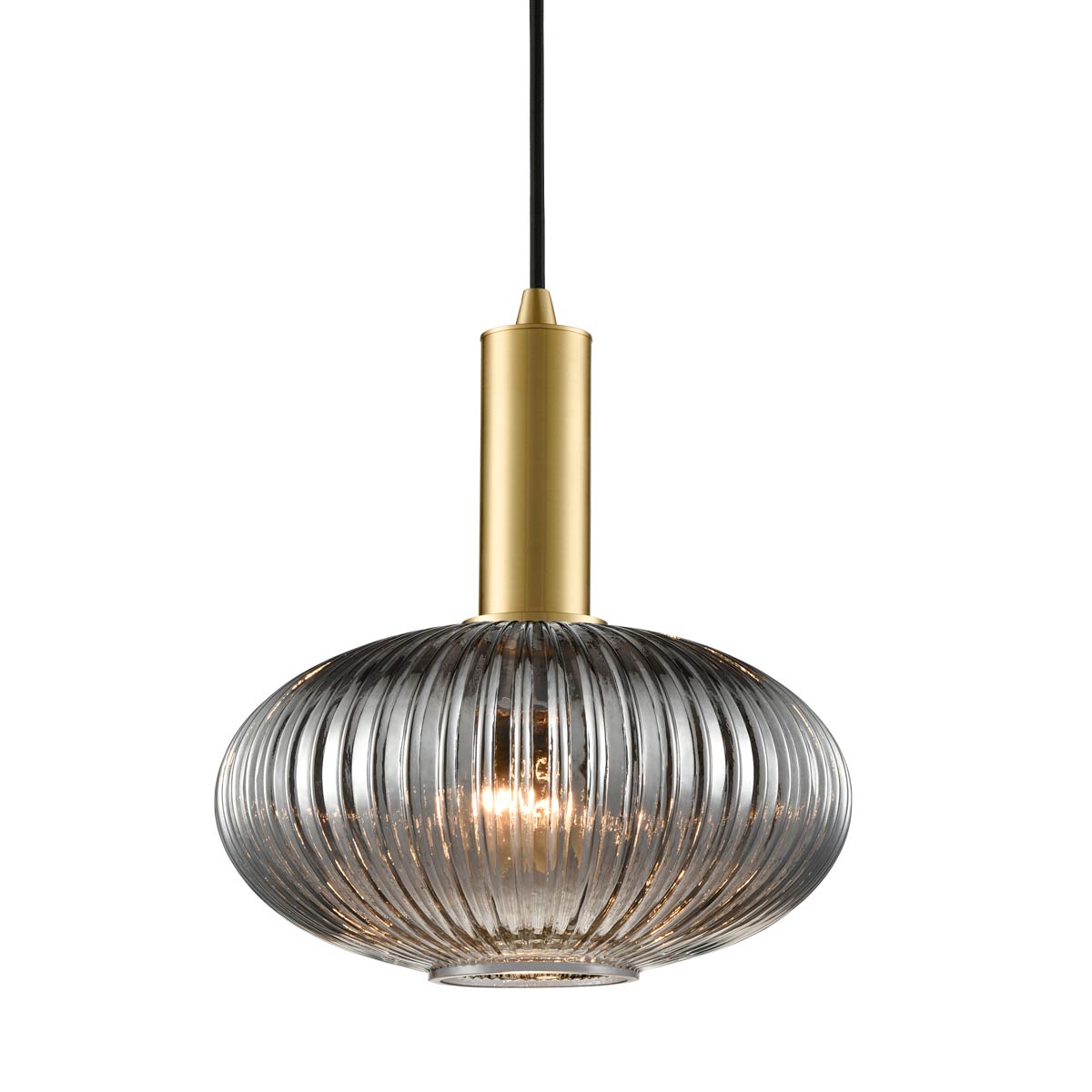 • Elliptical smoked ribbed glass shade