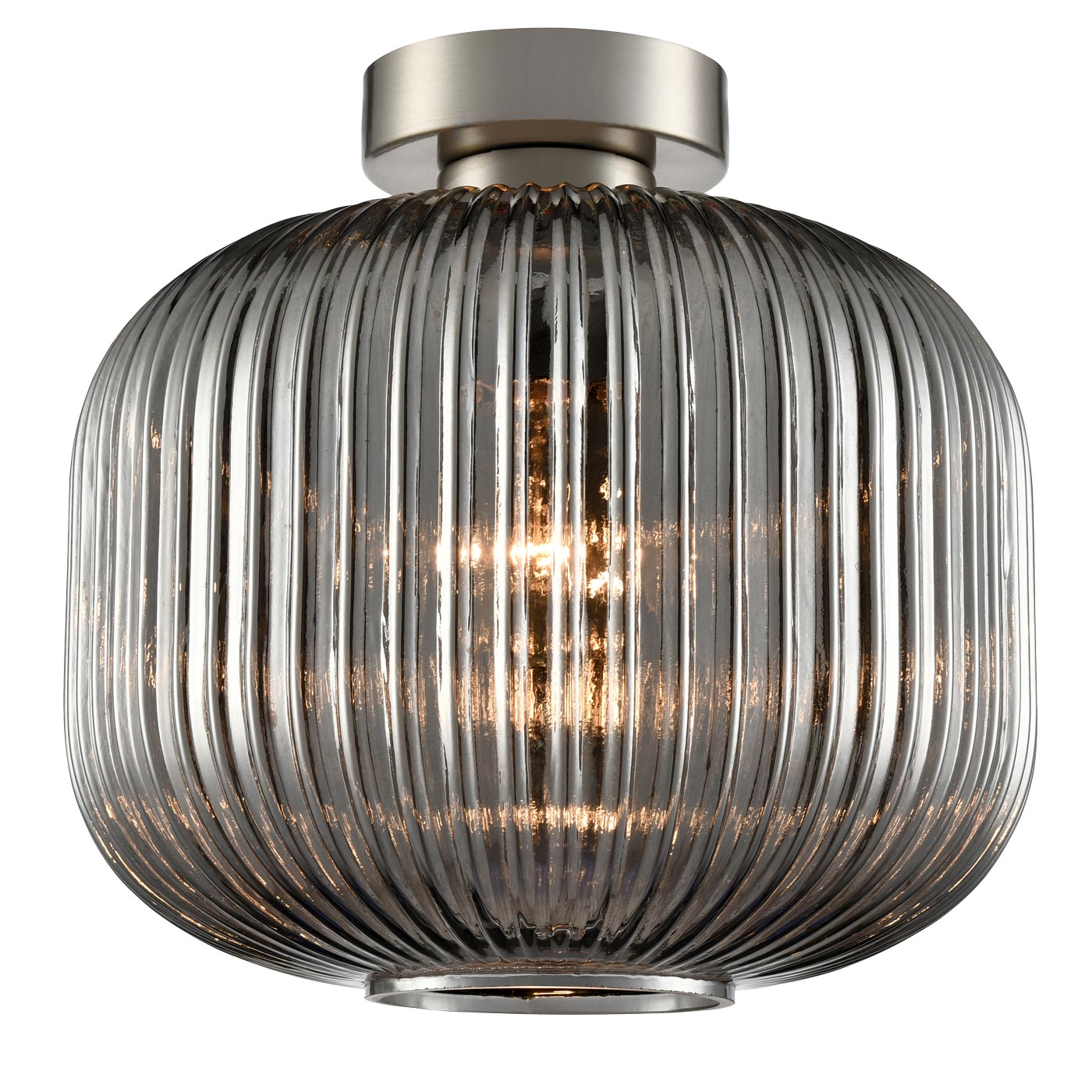 At home in both traditional and modern homes, the classic looks and flawless finish make this ceiling light the ideal choice in any room with a low ceiling. The satin nickel finish is timeless, and the smoked ribbed glass creates texture. Ideal for a bedroom, breakfast, living or dining room.