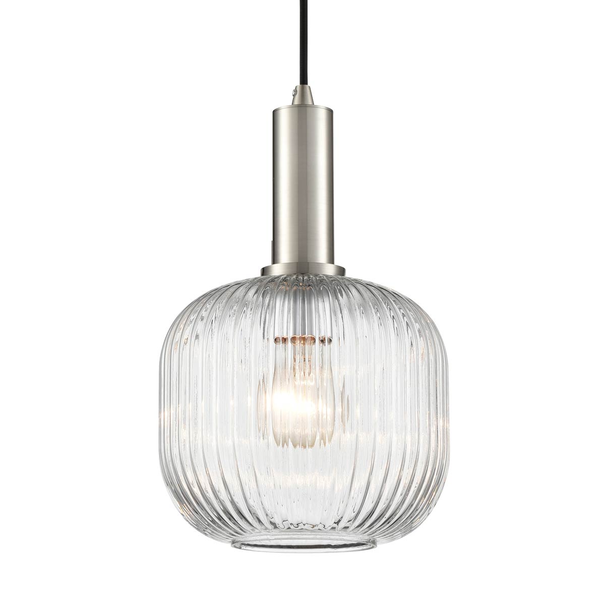 Mezcla Satin Nickel Ceiling Pendant with Ribbed Clear Glass 20cm
