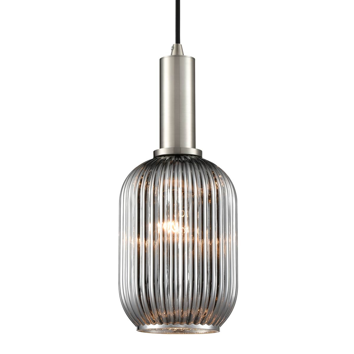 Mezcla Satin Nickel Ceiling Pendant with Smoked Ribbed Glass 15cm