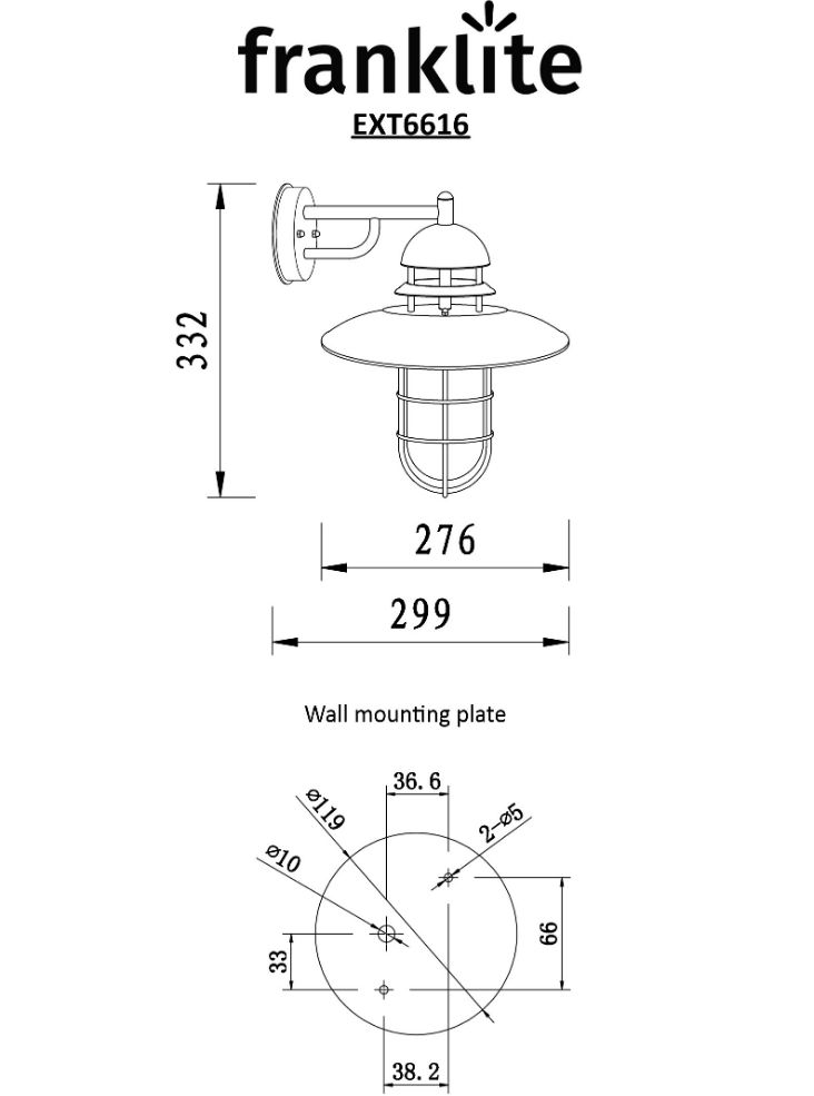 Exterior fittings must have an IP (Ingress Protection) rating, which indicates the fittings’ ability to prevent solids and liquids penetrating the enclosure. The higher the number, the greater the protection. The minimum rating for an outside light exposed to the weather is IP23. This modern outdoor wall lantern is rated IP44.