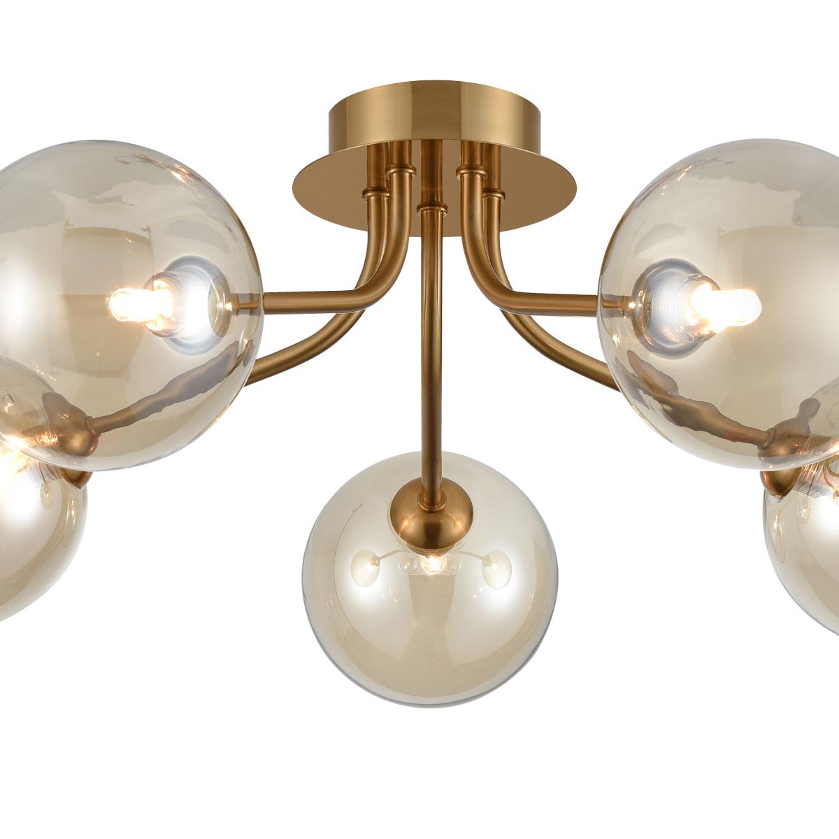 Modern 5 Light Semi Flush Antique Gold Amber Glass Shades