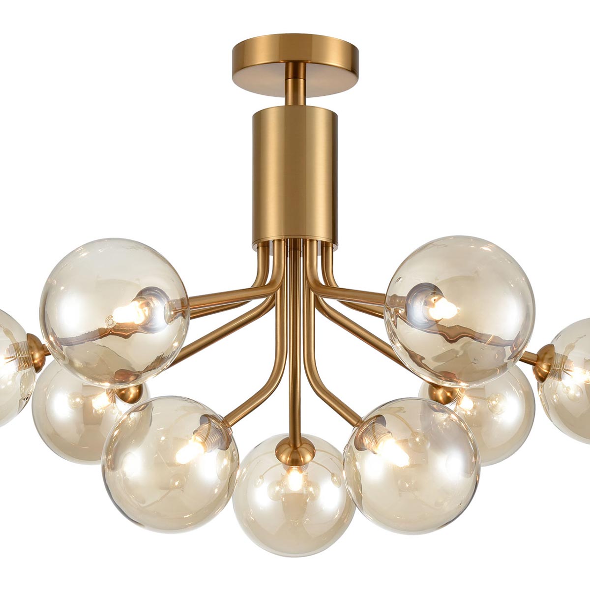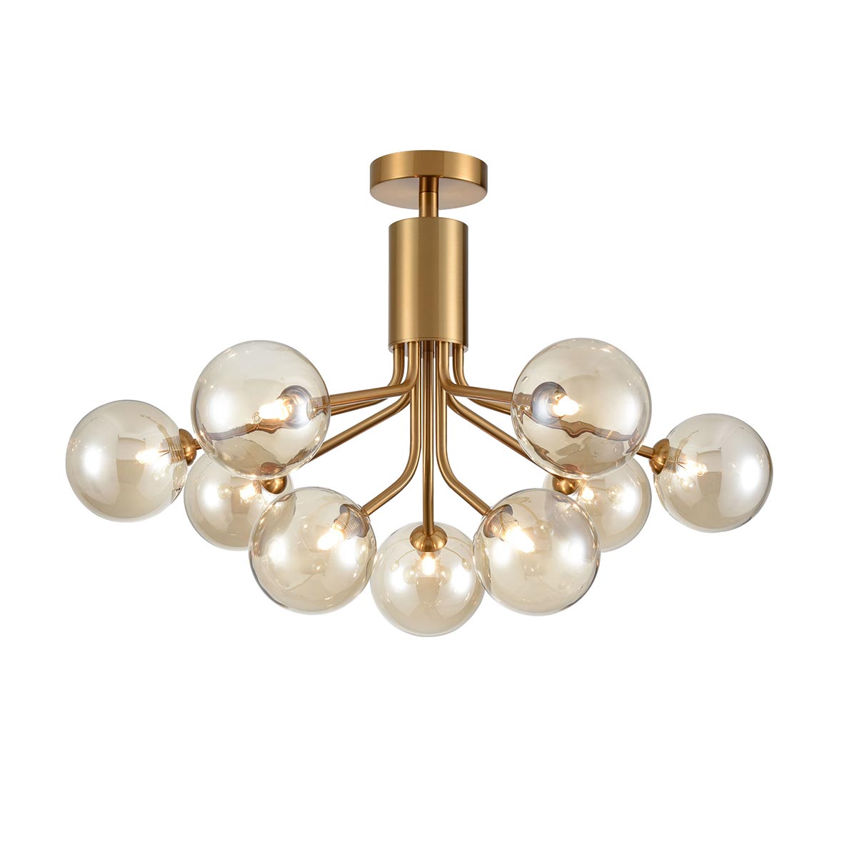 Modern 9 Light Pendant Antique Gold Amber Glass Shades