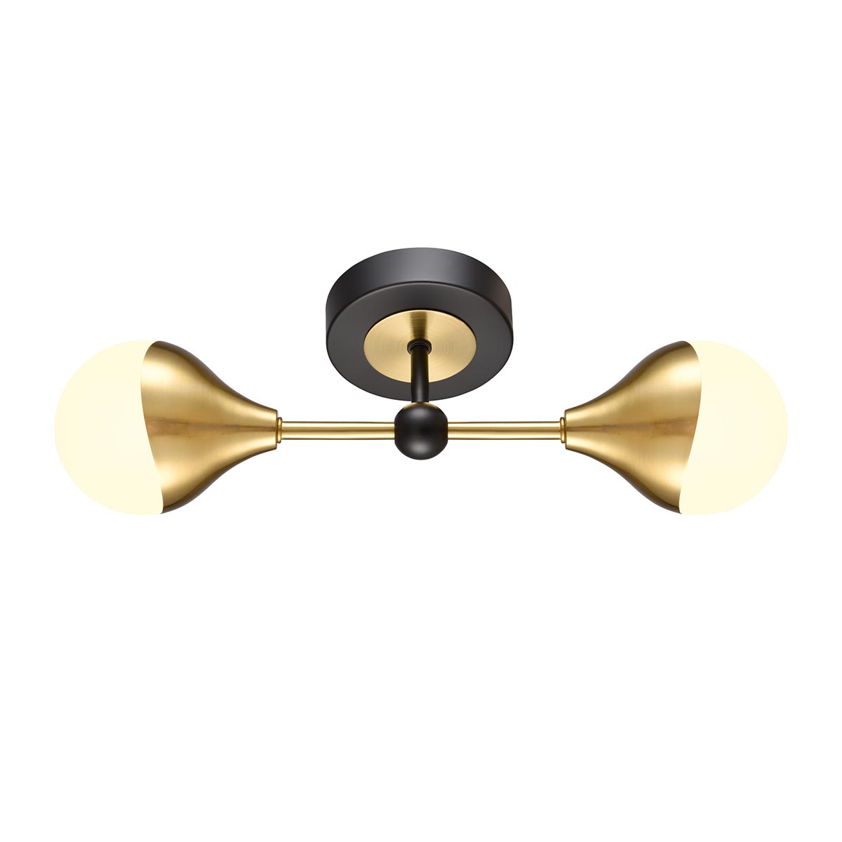 At home in both traditional and modern settings, the straight arm invokes a modern look and the matt black and aged brass create warmth. The opal white glass provides softened glare free light, making it ideal for any bedroom, hallway, living or dining room.