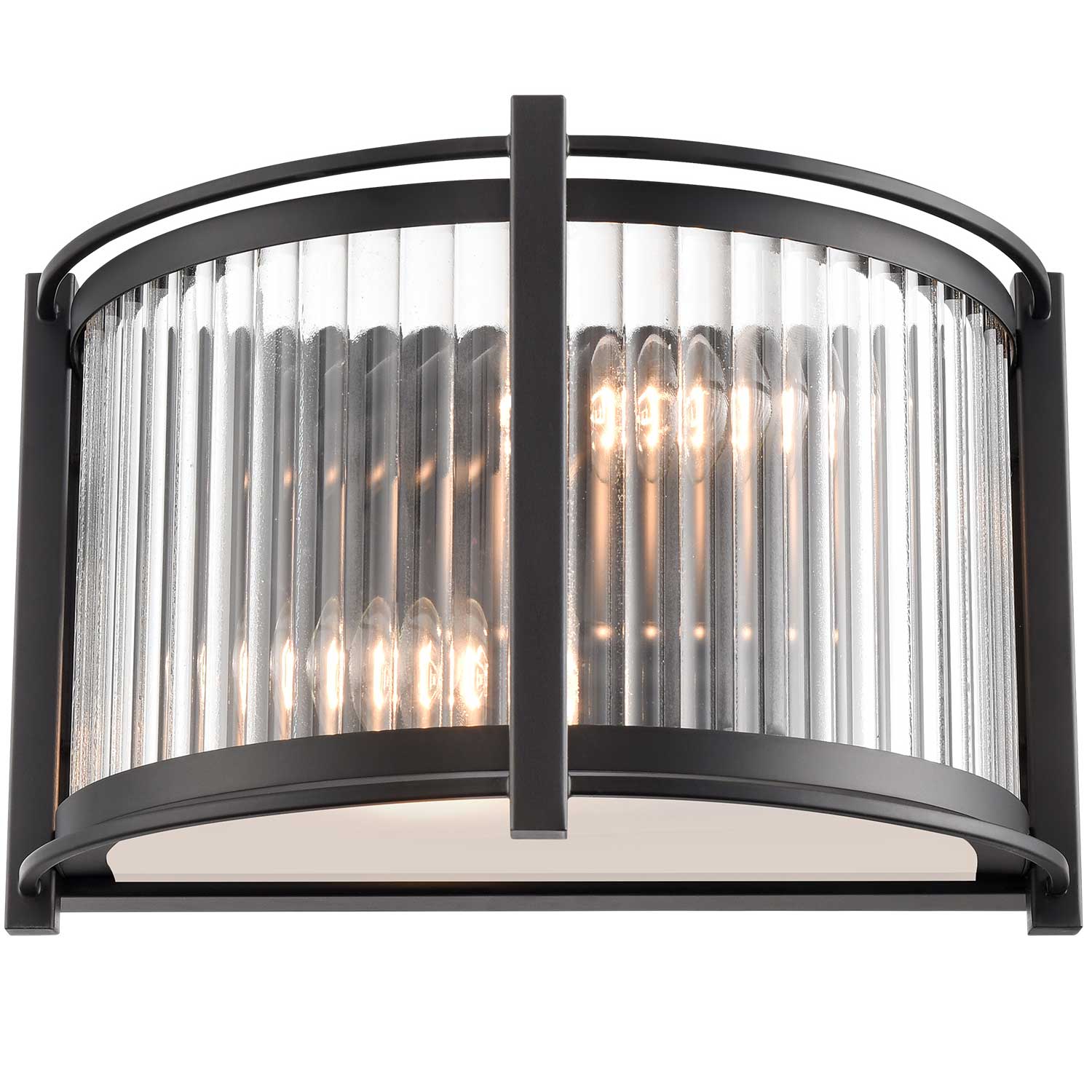 Sloane 2 Light Matt Black Wall Light With Ribbed Glass