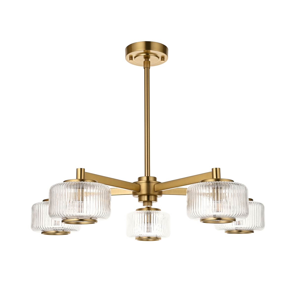 Stamford 5 Light Pendant in Aged Brass with Ribbed Glass
