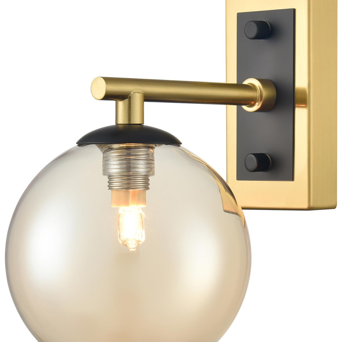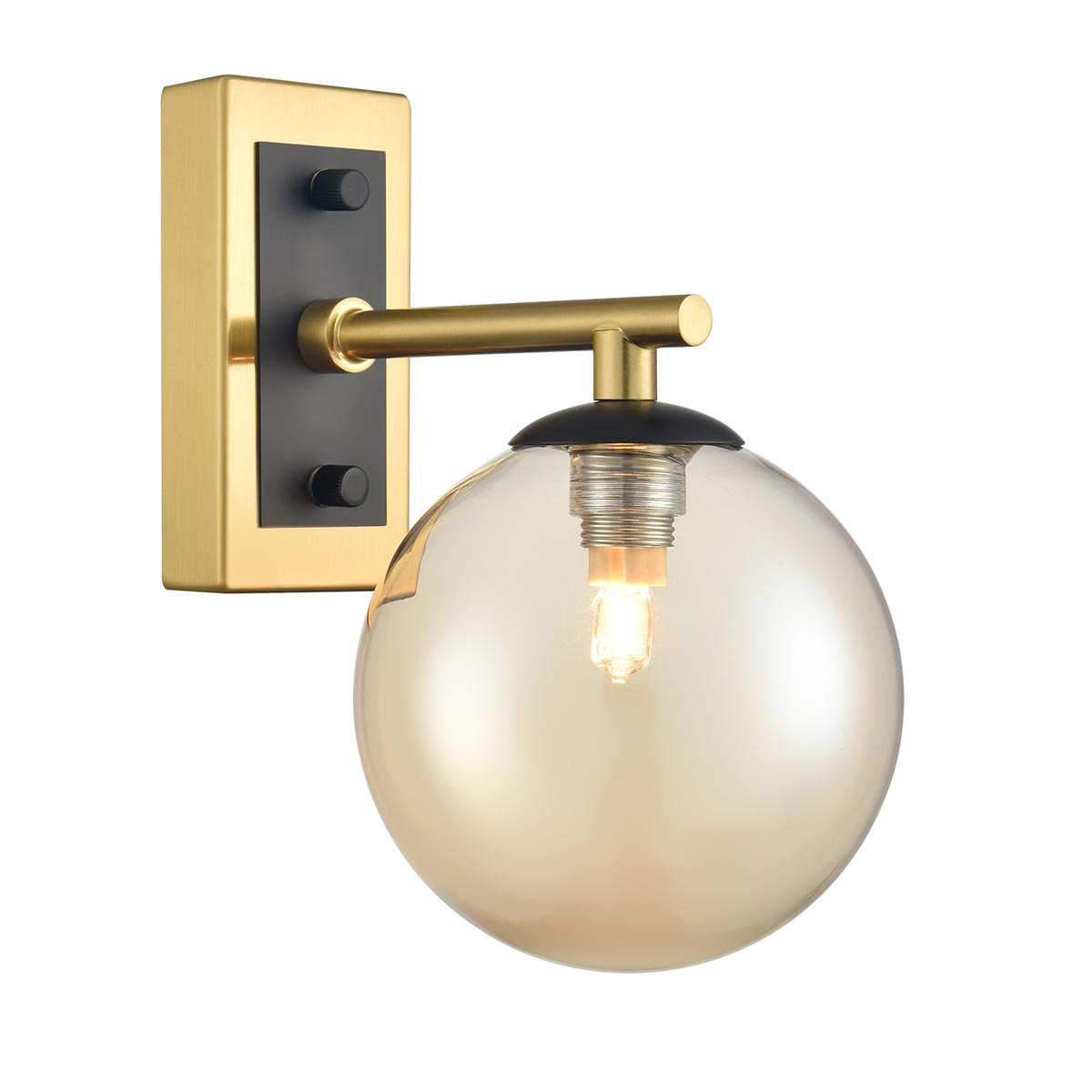 Stellar Single Wall Light Black / Aged Brass With Smooth Amber Glass